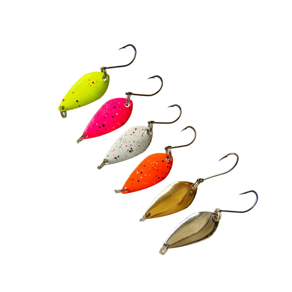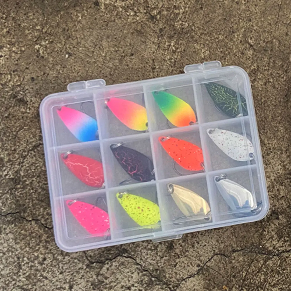 Balleo-mini señuelo giratorio con un solo anzuelo para trucha, cuchara de metal colorida, Lucio y lubina, juego de 12 piezas, 1,5G/2,5G/3,5G