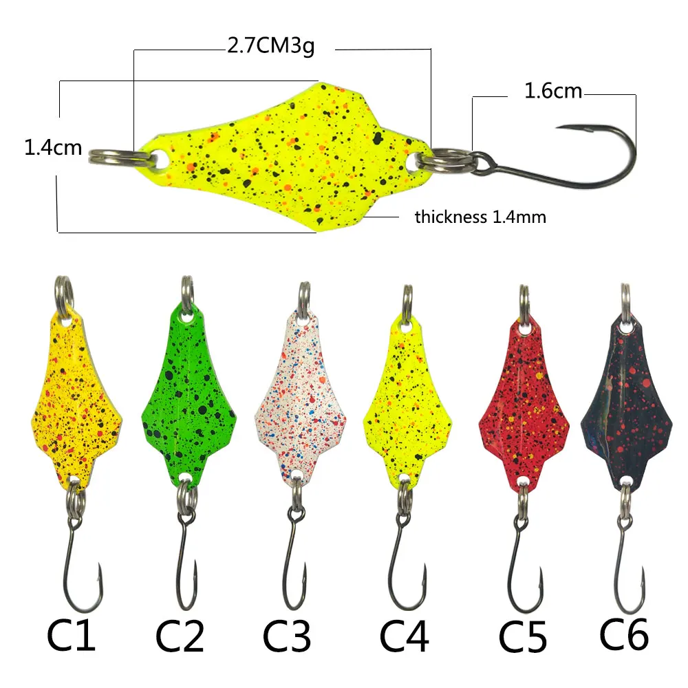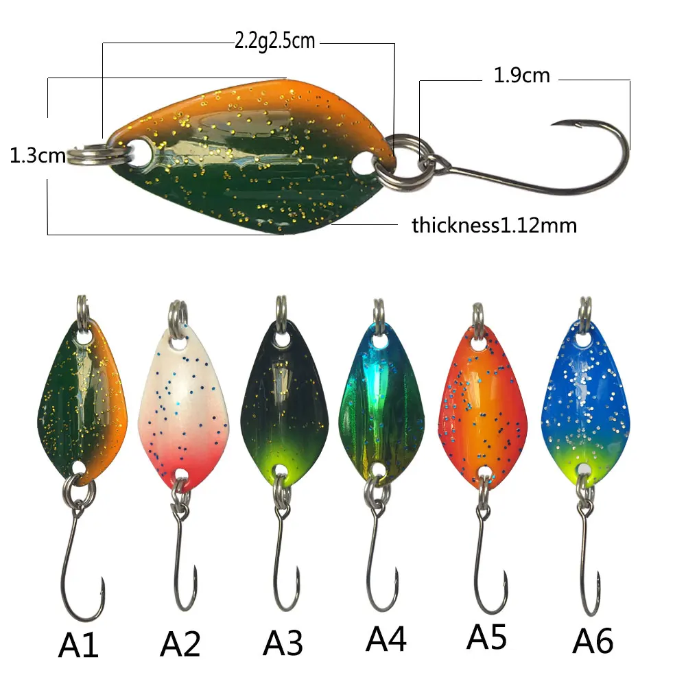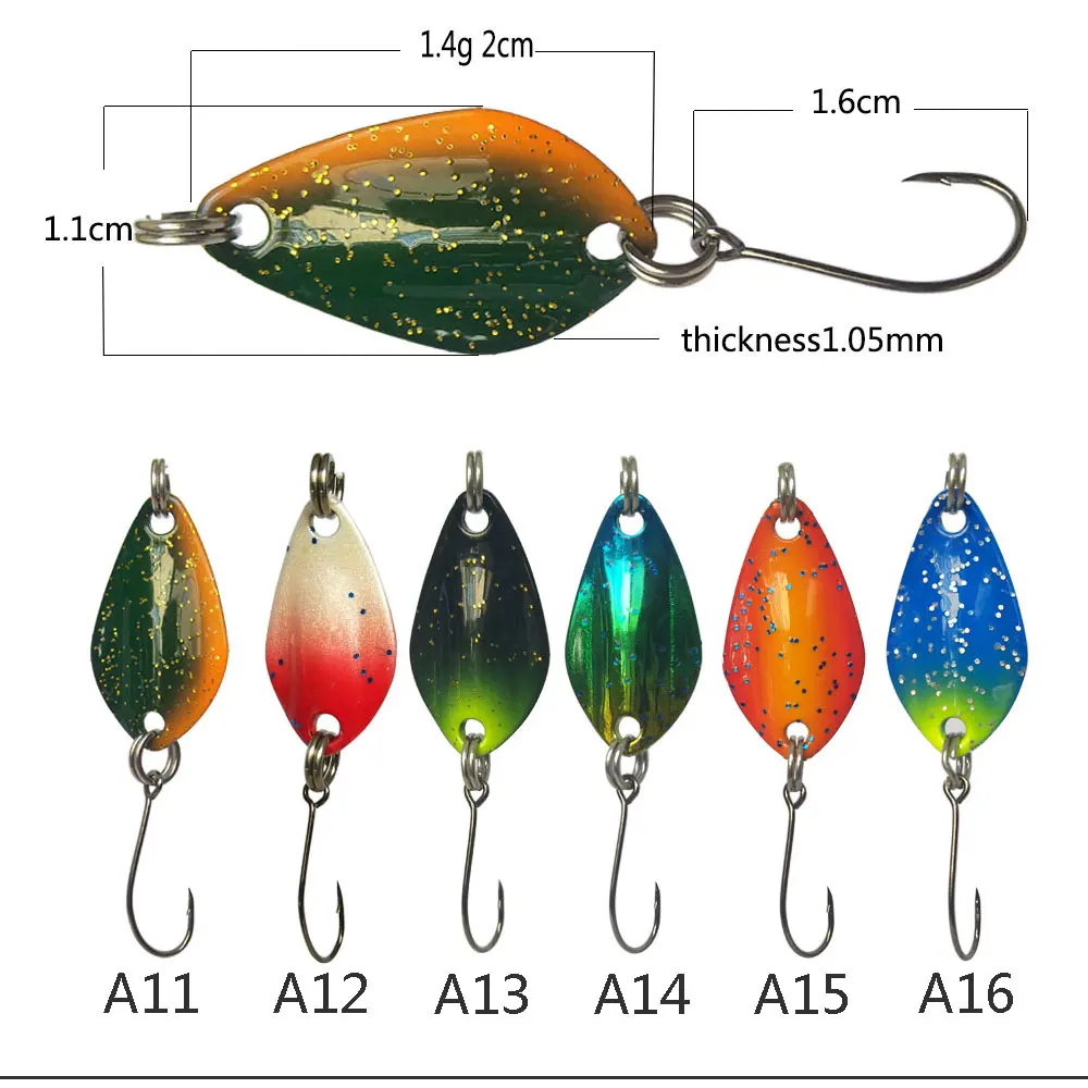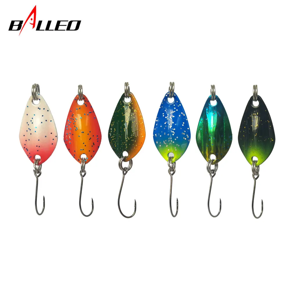 BALLEO 1 Uds. Cuchara de colores de metal para pesca, cebos de 1,4g/1,8g/2,2g/2,5g/3g/3,3g, cebo de lentejuelas, mini cebo para trucha, anzuelo único