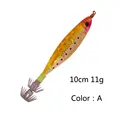 Balleo-Plantilla de calamar láser de 1 piezas, 10cm/11g, señuelo de madera para pesca de camarones, sepia, anzuelo de garra de pollo afilado, cebo de pulpo