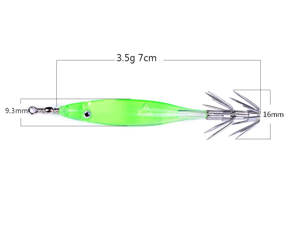 Ni siquiera brilla en la oscuridad y no parece muy bueno. Es demasiado pequeño para usarlo para la pesca de pulpos, así que no creo que sea adecuado. Parece que debería usarse en una boya.