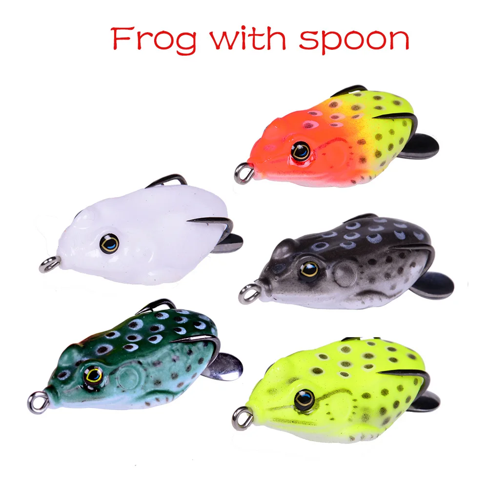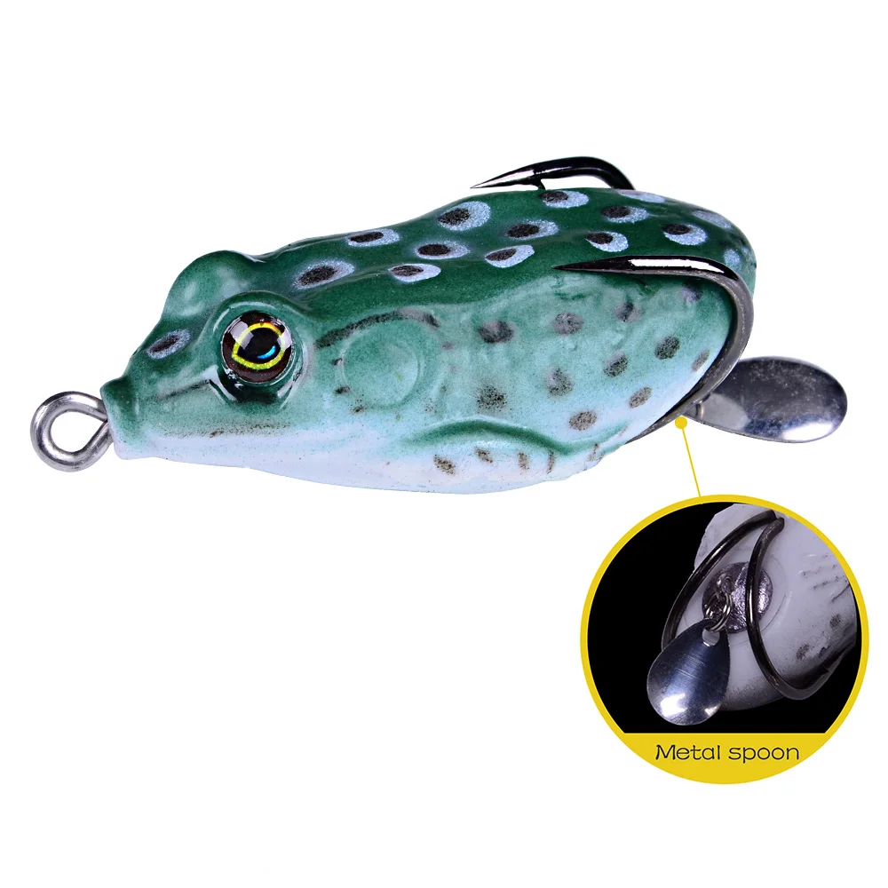 Oft-señuelo de rana de pesca de 6cm/12g, señuelo de rana de silicona con cuchara de metal, señuelo de pesca, trucha, wobblerCaracterísticas:Los ojos 3D lo hacen una herramienta perfecta para los amantes de la pesca.