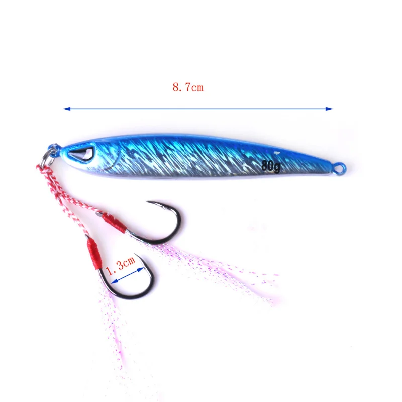 BaMetal Metal cebo duro Placa de hierro gancho único 80g 90mm láser de largo alcance accesorios de equipo de pesca Artificial profesional