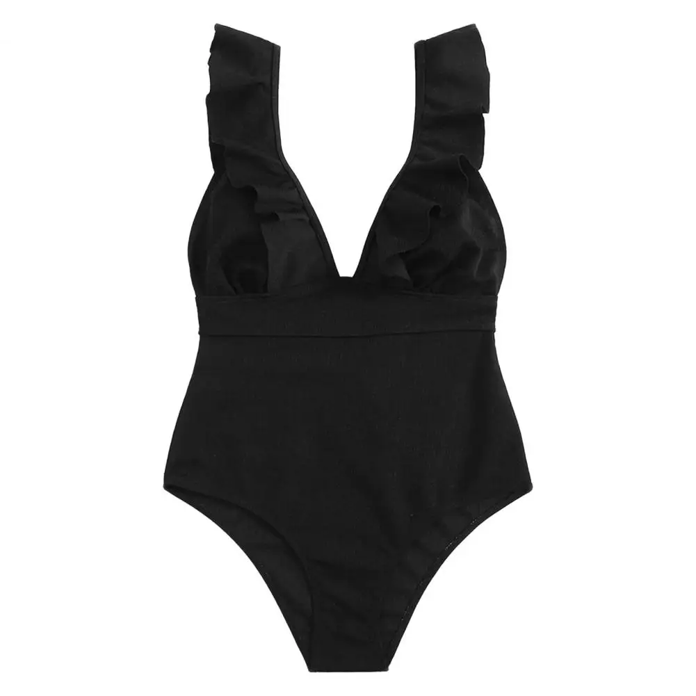 Traje de baño de una pieza para mujer, traje de baño cómodo de cintura alta con volantes para Entrenamiento de natación