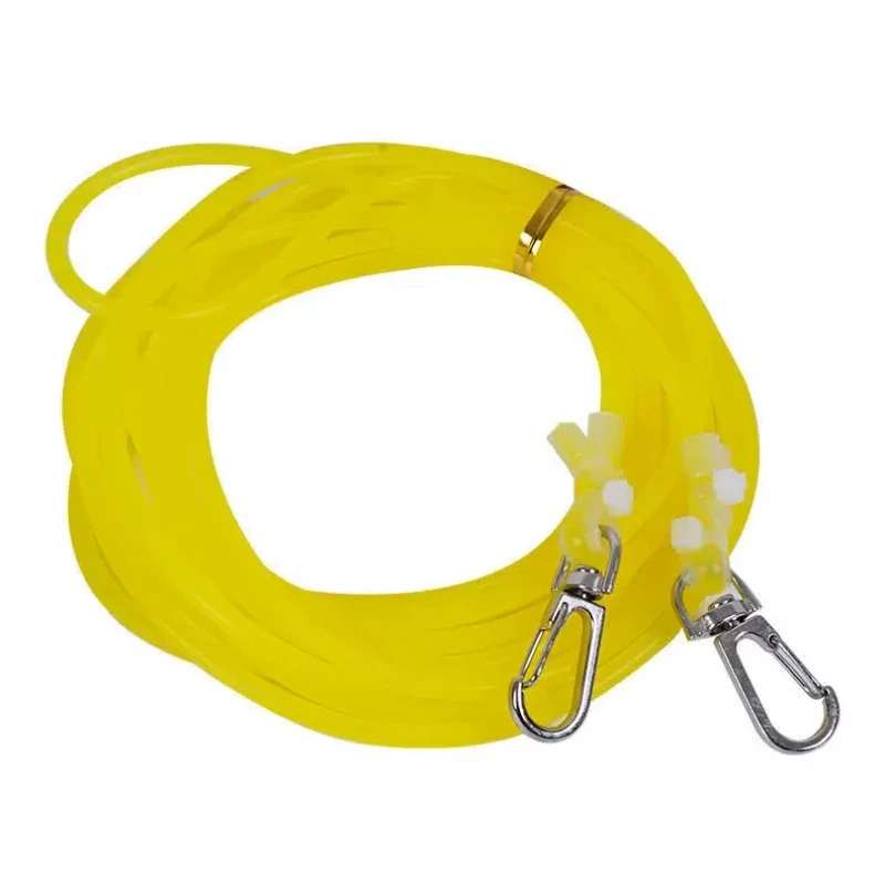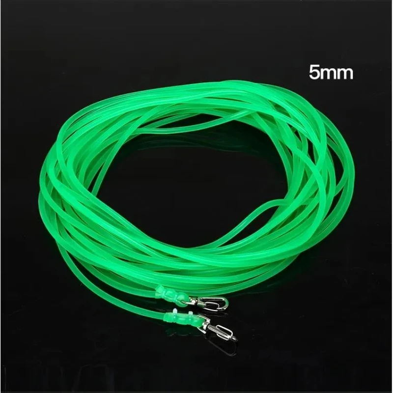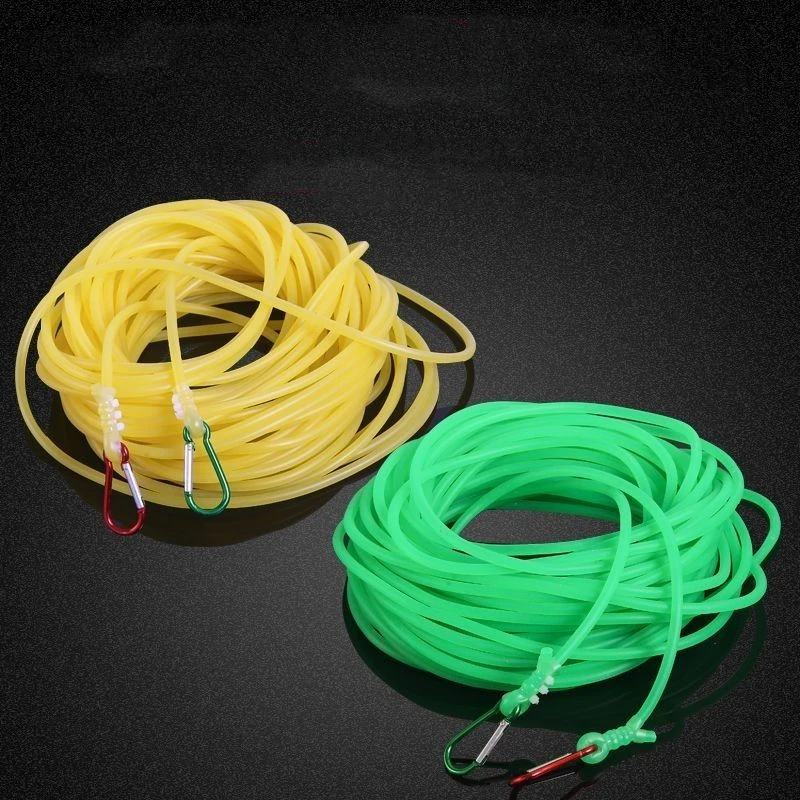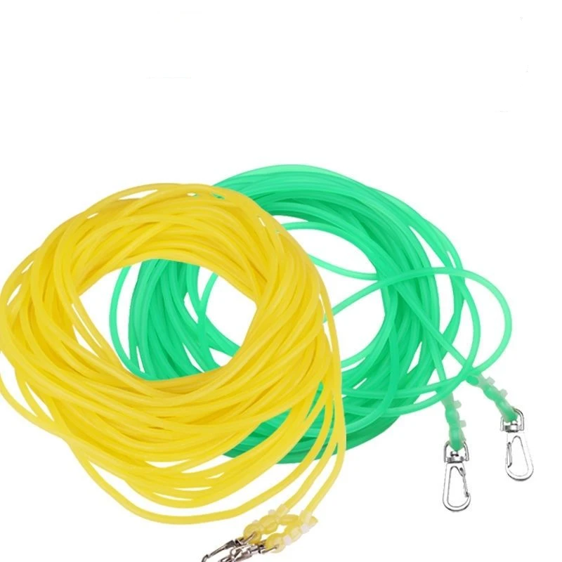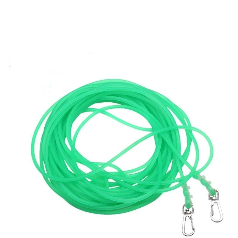 Banda de goma sólida elástica de 5m, 18m de diámetro, 4mm, cuerda, poste de retención, sedal de pesca con gancho, manguera antibobinado, antimordida