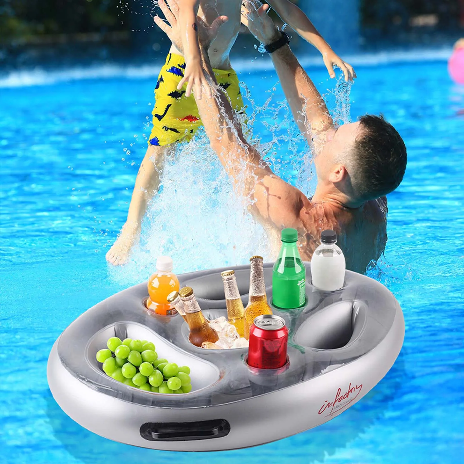 Esencial para fiestas: asegúrate de estar preparado para cualquier evento junto a la piscina con esta bandeja flotante esencial. Es un accesorio imprescindible para mantener sus bebidas frescas y accesibles mientras toma el sol.