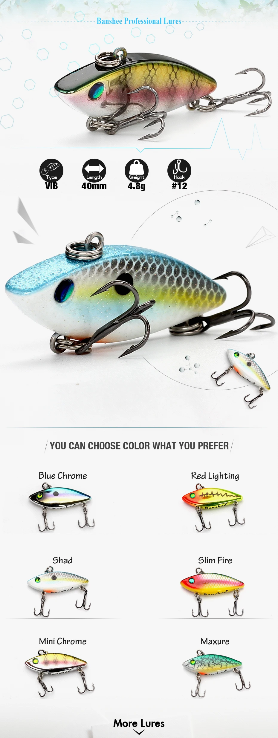 Banshee 40mm 4,5G Crankbait Mini Vib Bait señuelo de pesca sin labios sonajero cebo duro Wobbler de hundimiento Artificial para aparejos de pesca
