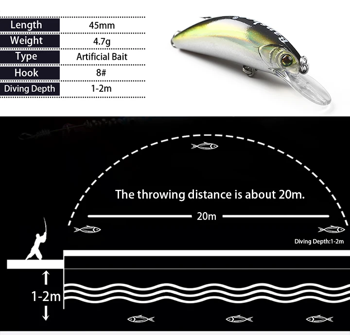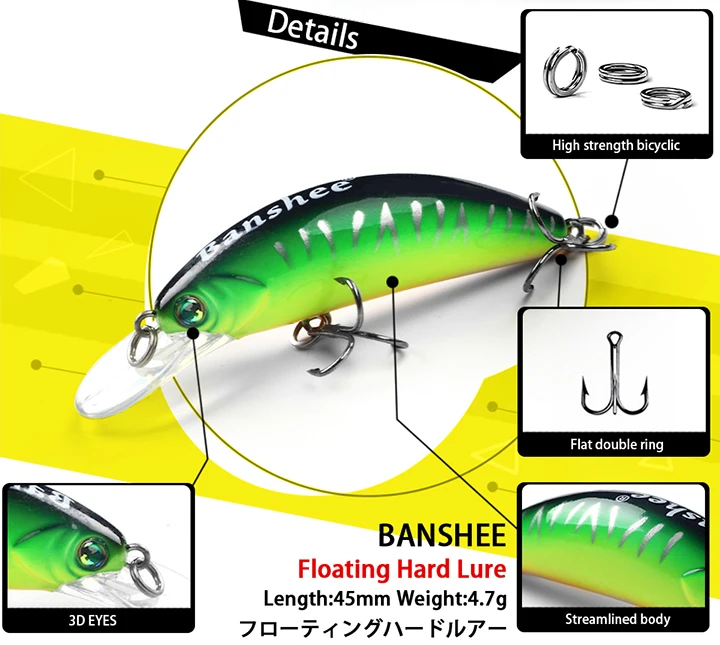Banshee 45mm 4,7g Crankbaits de mar pesca Wobbler para Lucio Mini Crankbait flotante Minnow señuelo de pesca lubina cebo duro Artificial