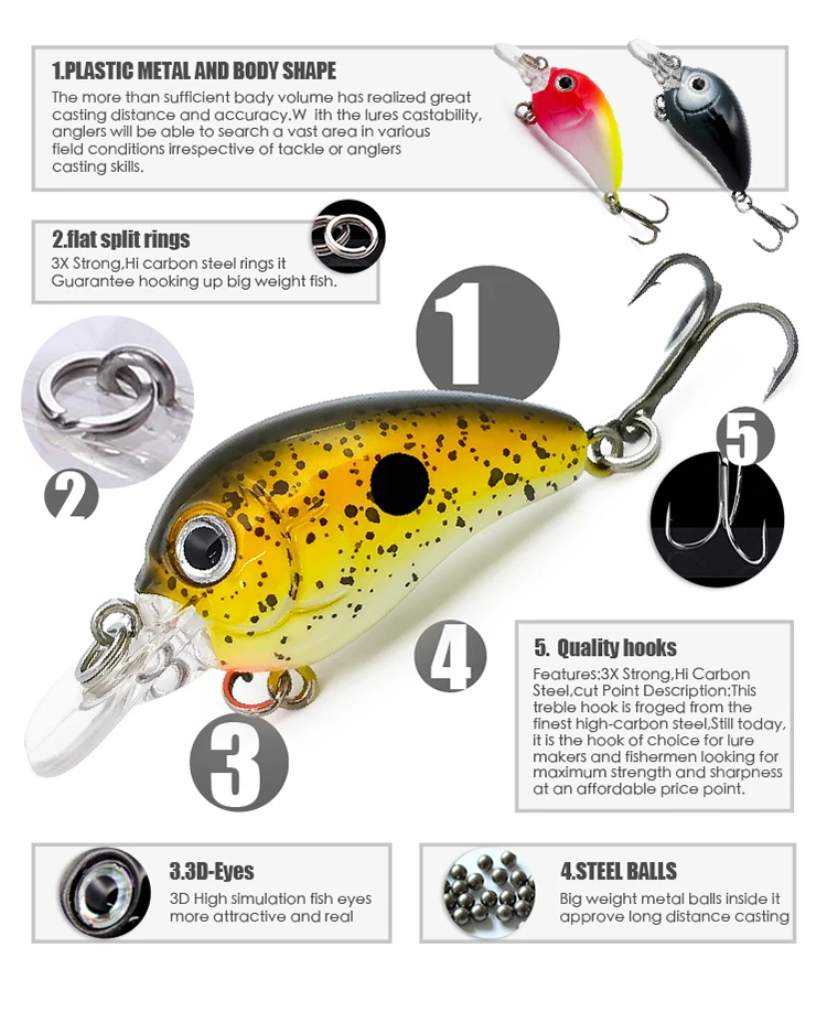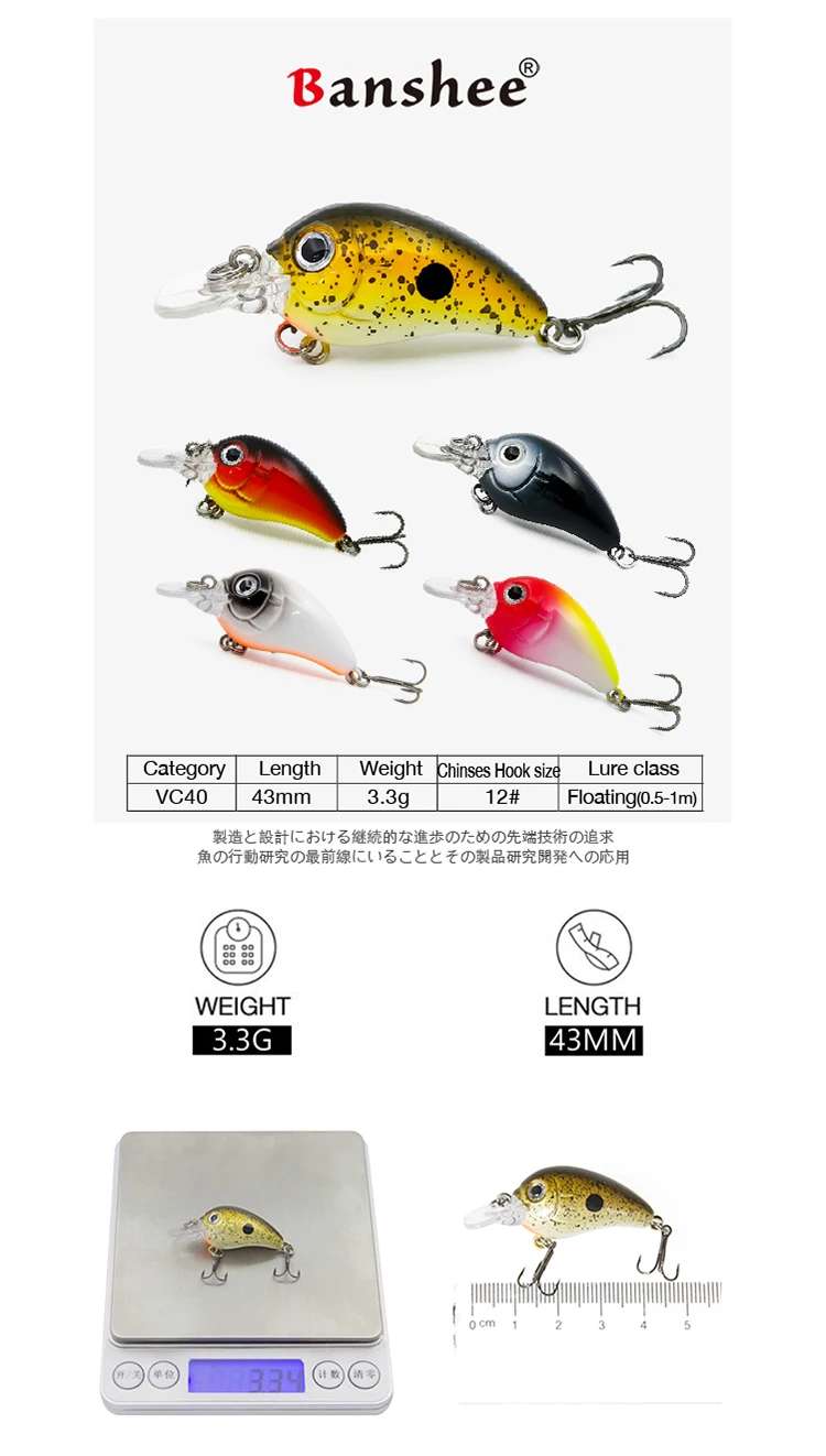 Banshee 5 uds Mini Wobblers para Pike Crankbaits Señuelos de Pesca conjunto hundimiento Crankbait para cebos de arrastre duro Artificial 43mm 3,3G