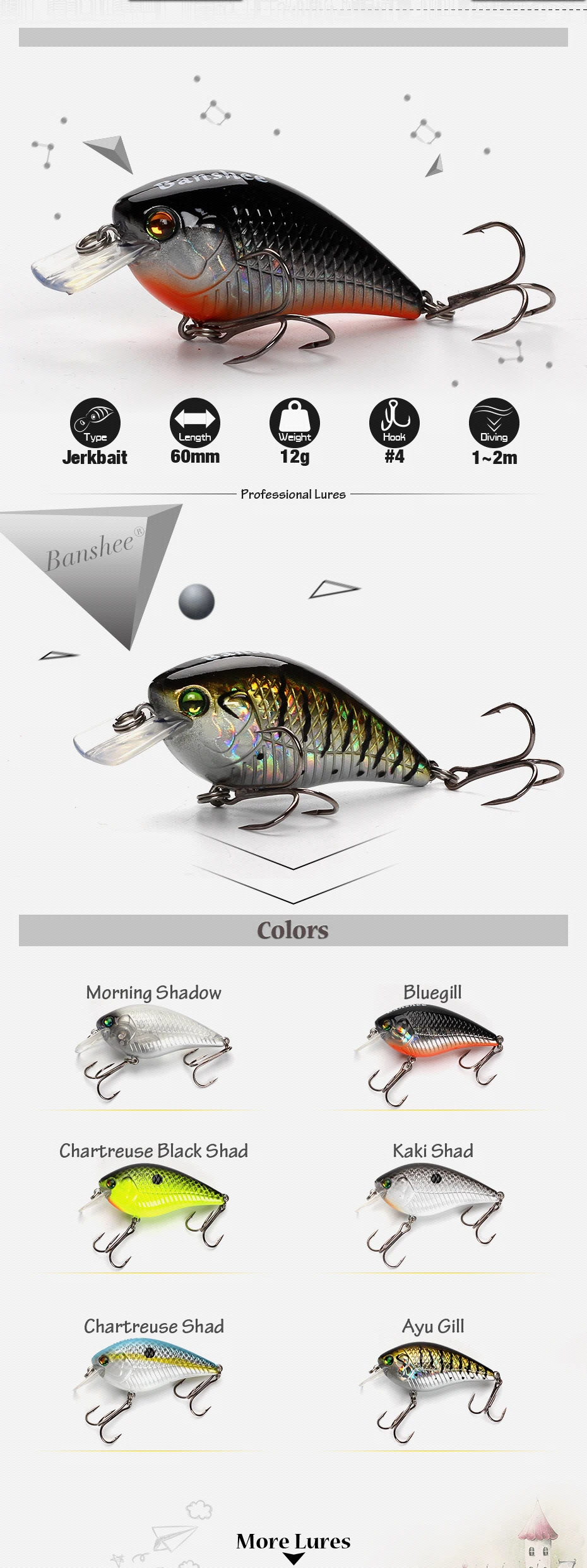 Banshee 6 unids/lote 60mm 12g manivela Blitz VC03 buceo medio flotante señuelo de pesca sonajero sonido Wobbler cuadrado Bill Crankbaits