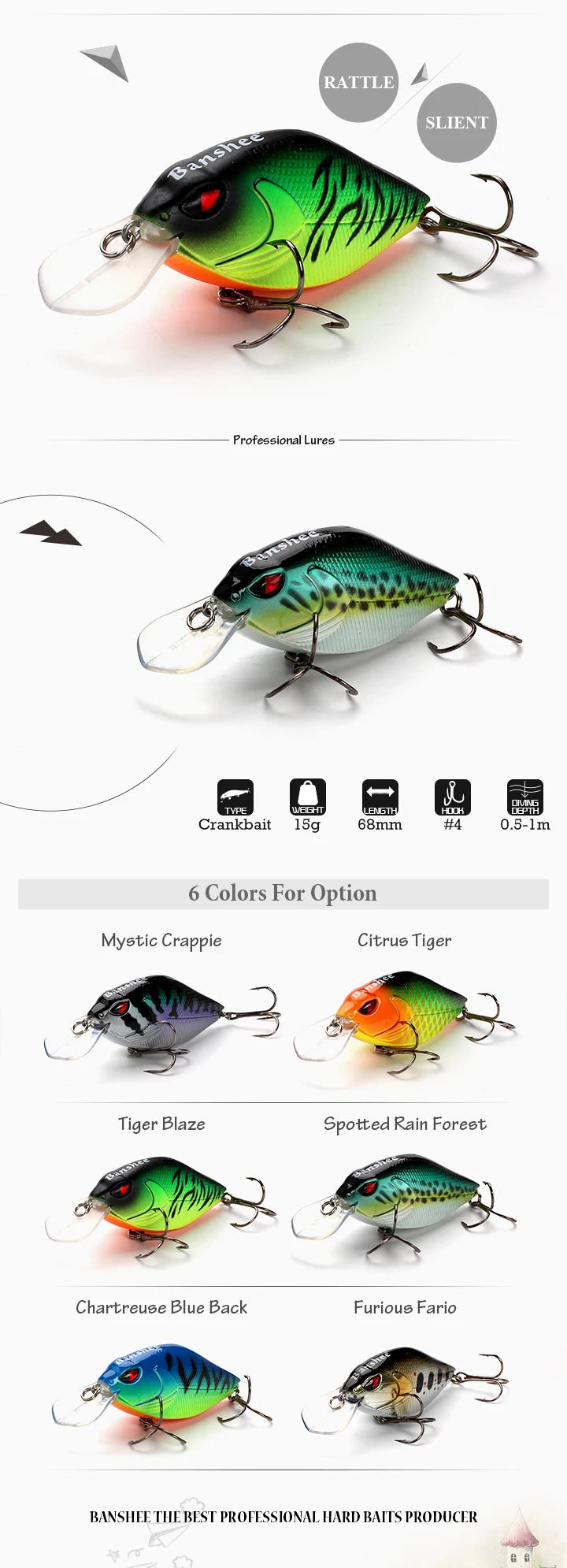 Banshee, 7cm, 15g, Crankbaits, señuelo de pesca, cebo duro, manivela, Wobbler, sonajero, Wobblers de sonido para Lucio, cebo Artificial flotante