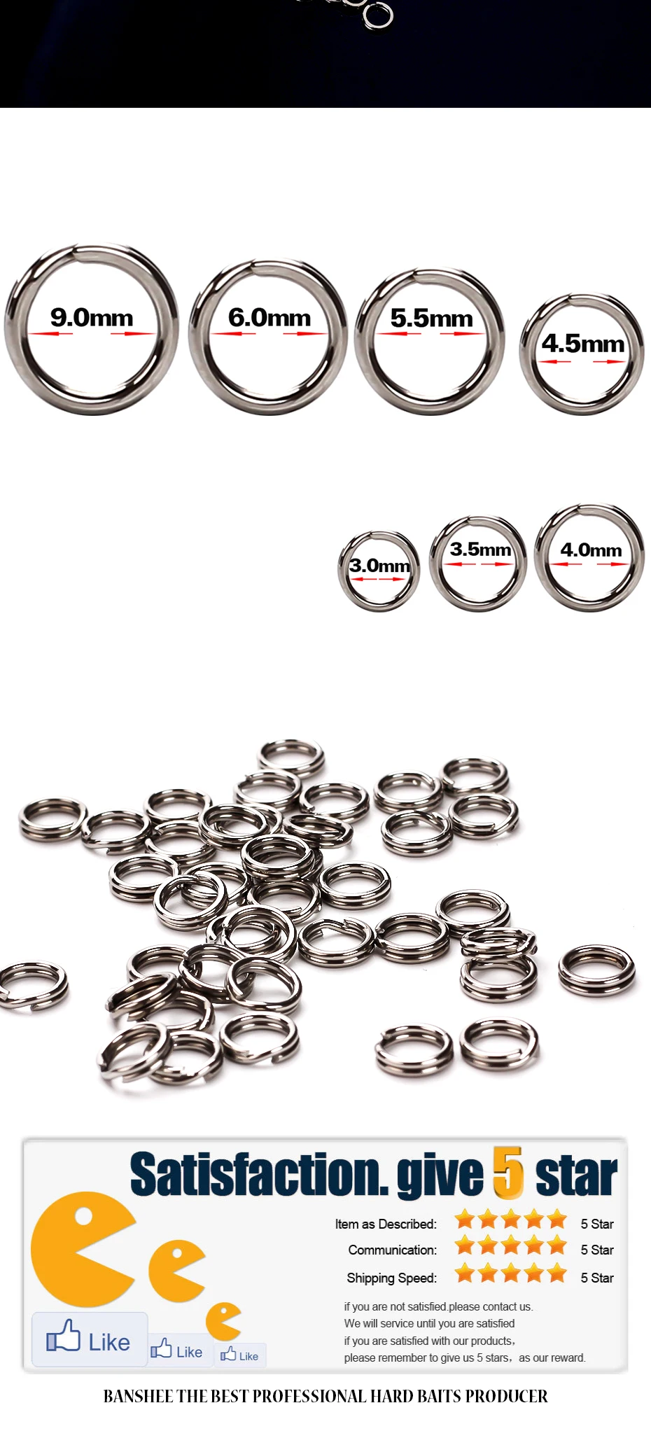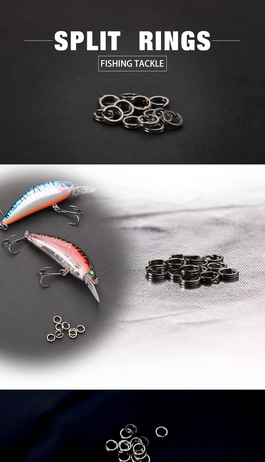 Banshee-anillo dividido de acero inoxidable resistente, Conector de pesca para señuelos, accesorios de pesca de 3/4/5/6/7/9mm, 60/100 Uds.