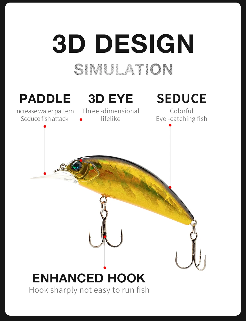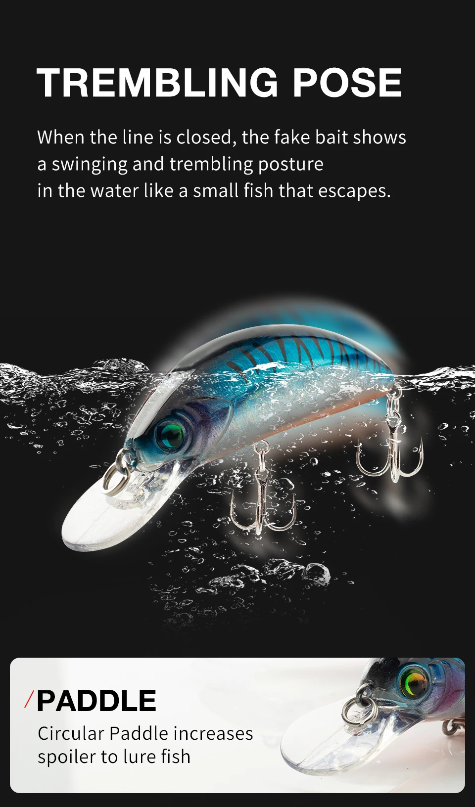 El modelo flotante permite que el señuelo se mueva de forma natural a través del agua, aumentando su eficacia y realismo.