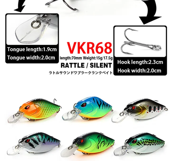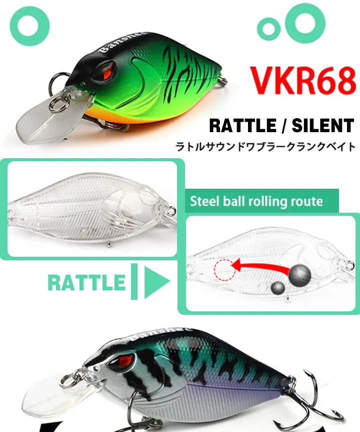 Construido para satisfacer las rigurosas demandas de los pescadores de torneos, El Banshee VKR68 Crankbait combina las características del ABS con la durabilidad del plástico. Lleno de espuma para una dureza inigualable, El Banshee VKR68 Crankbait cuenta con un pico dentado que cambia la dirección del agua que fluye sobre el cuerpo, mejorando el movimiento del cebo.
