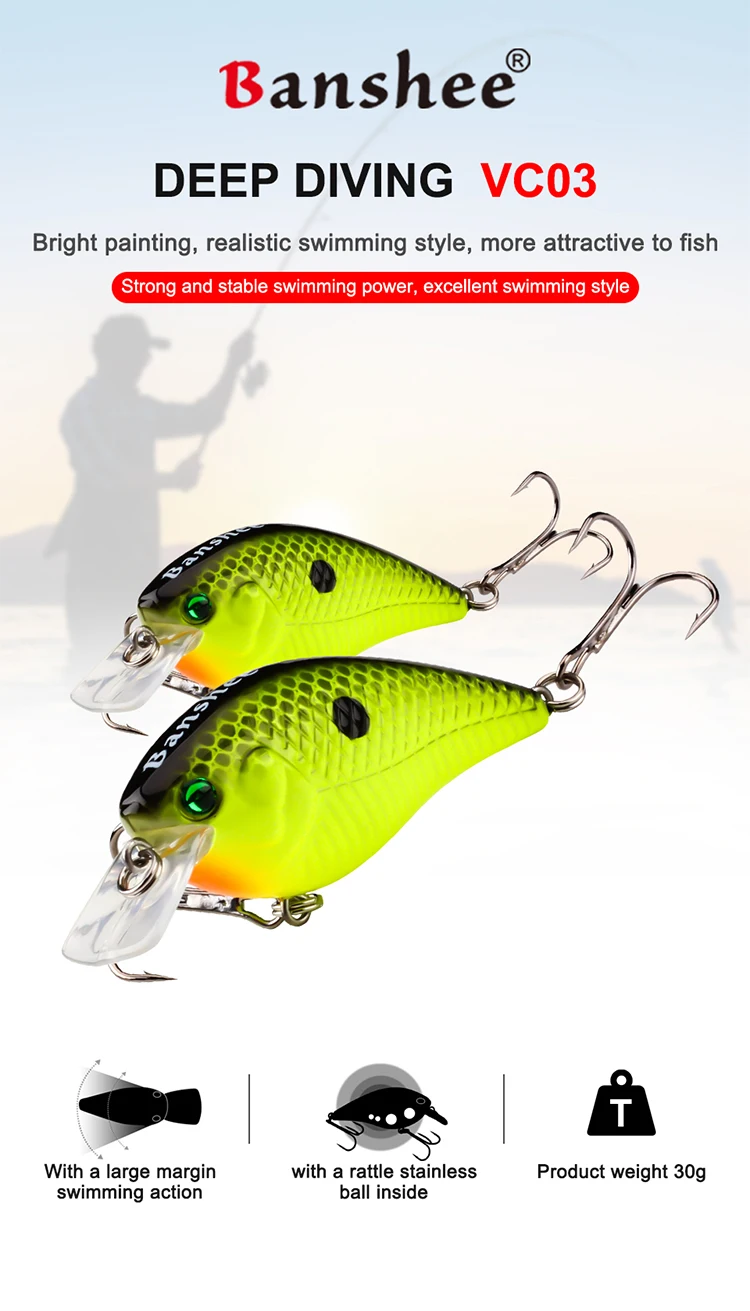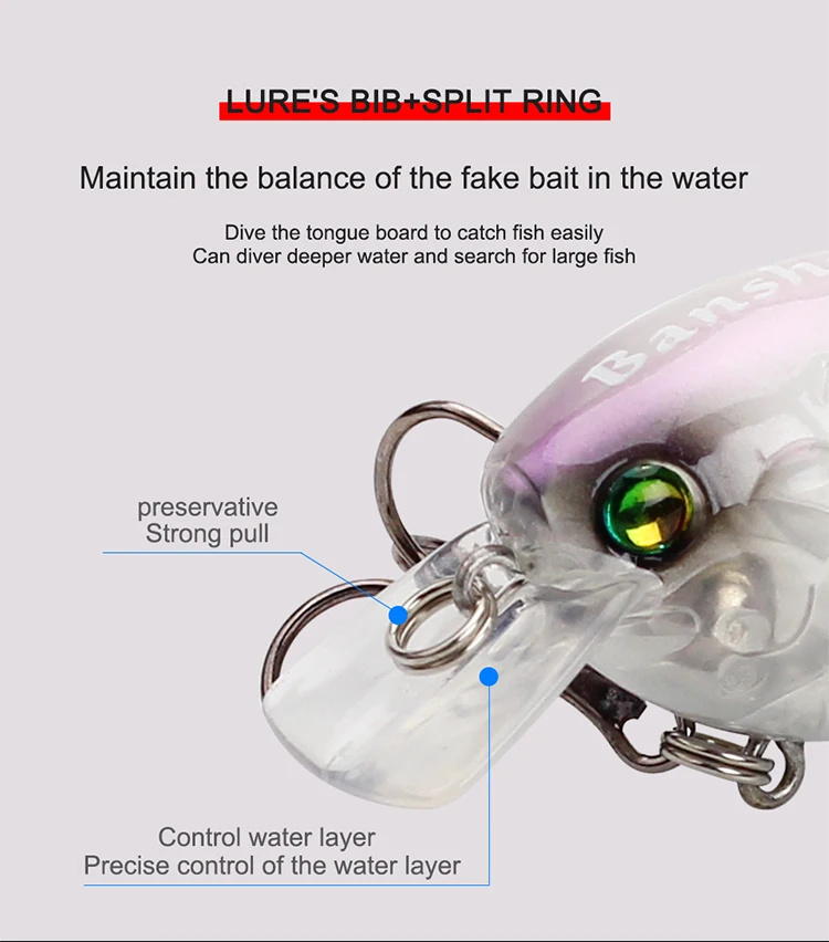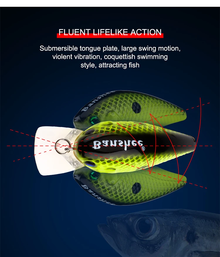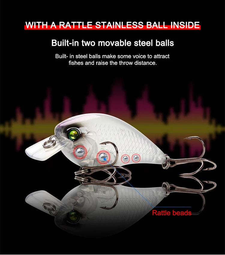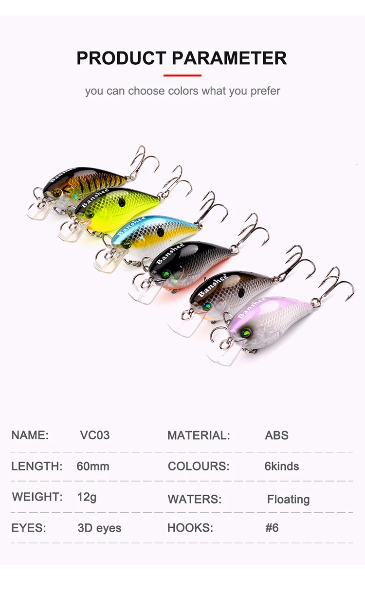 Banshee-señuelo de pesca flotante con manivela Blitz, 60mm, 12g, VC03, sonajero, sonido, Wobbler, cuadrado, Artificial, medio, buceo