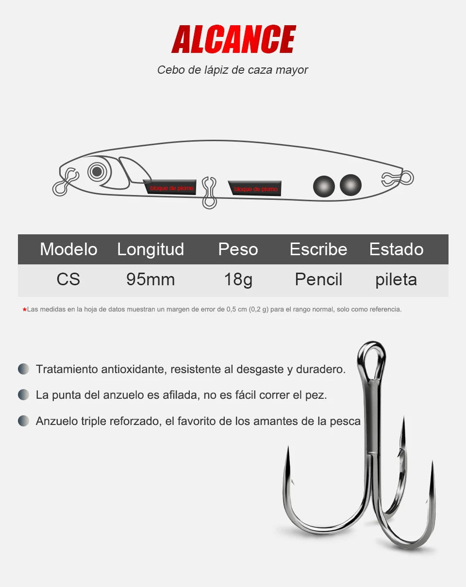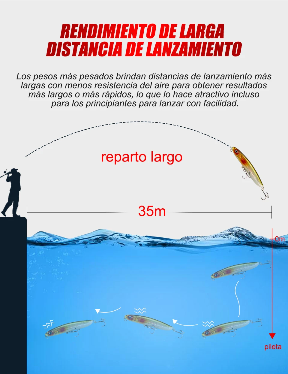 Somos una fábrica, producimos Señuelos de Pesca durante muchos años, este señuelo de lápiz es muy vendido en los últimos 5 meses, muchos clientes consideran que este señuelo de lápiz es bueno y hermoso.