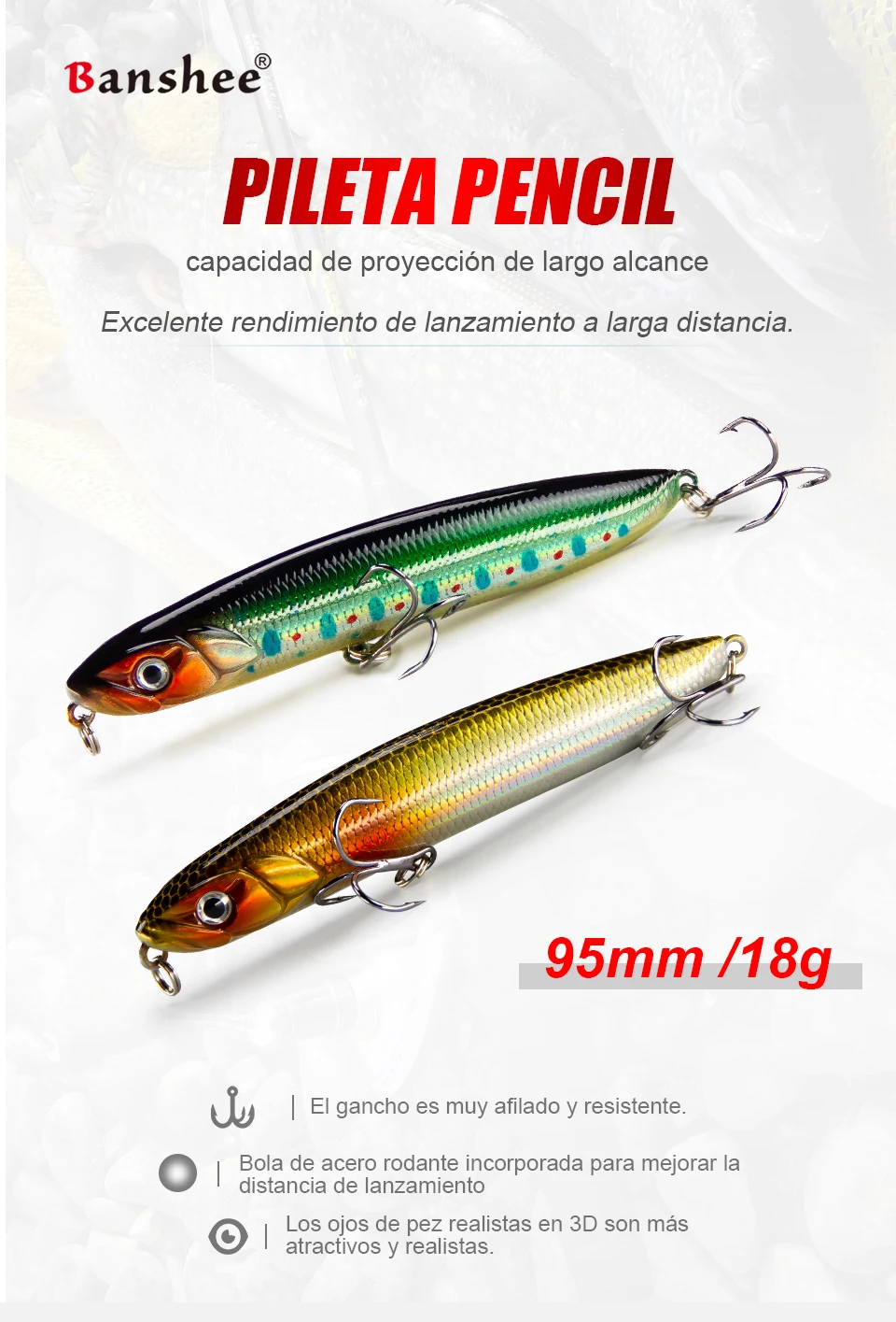 Banshee-señuelo de pesca de hundimiento, cebo duro Artificial, 95mm, 18g, Stickbait Wobblers para Trolling Pike Perch Bass Crankbait