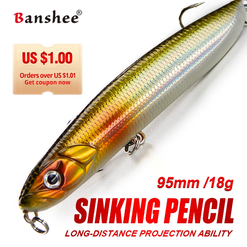 Banshee-señuelo de pesca de hundimiento, cebo duro Artificial, 95mm, 18g, Stickbait Wobblers para Trolling Pike Perch Bass Crankbait