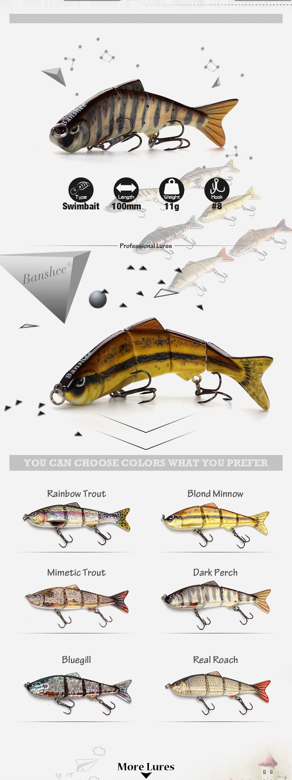 Banshee-señuelo de pesca de VMJ04-4, 100mm, 11g, 4 escalones, multiarticulado Swimbait de hundimiento, cebo Artificial duro