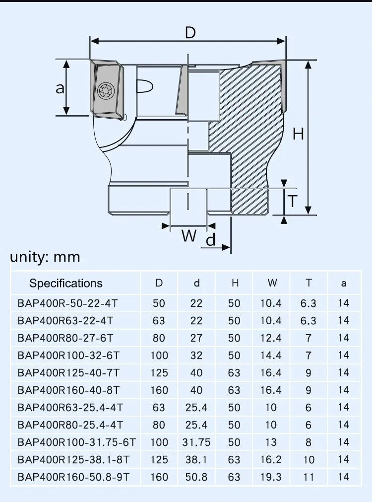 BAP400R 50-22-4T 63 80 100 cuchillo de fresado para máquinas herramienta CNC fresa de extremo facial cortador plano con inserciones de carburo APMT160408