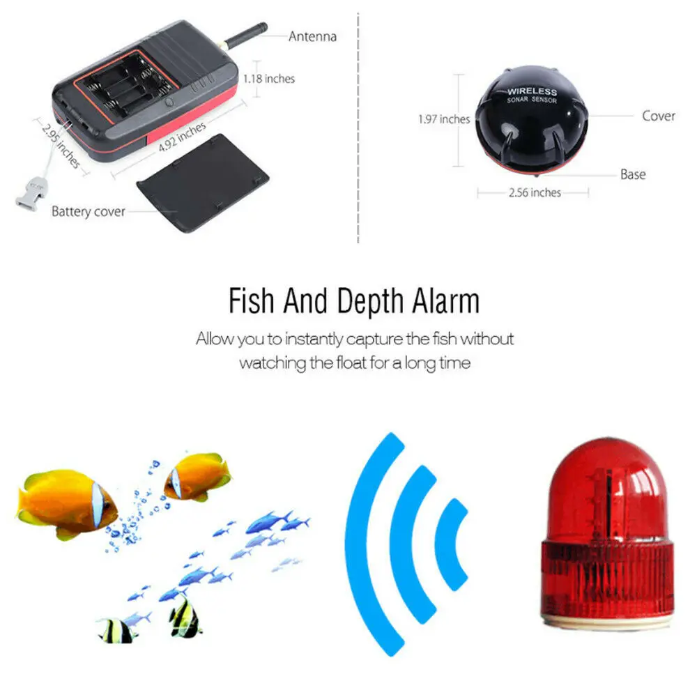 Alarma sonora de peces y profundidad, profundidad de 2 pies a 120 pies.