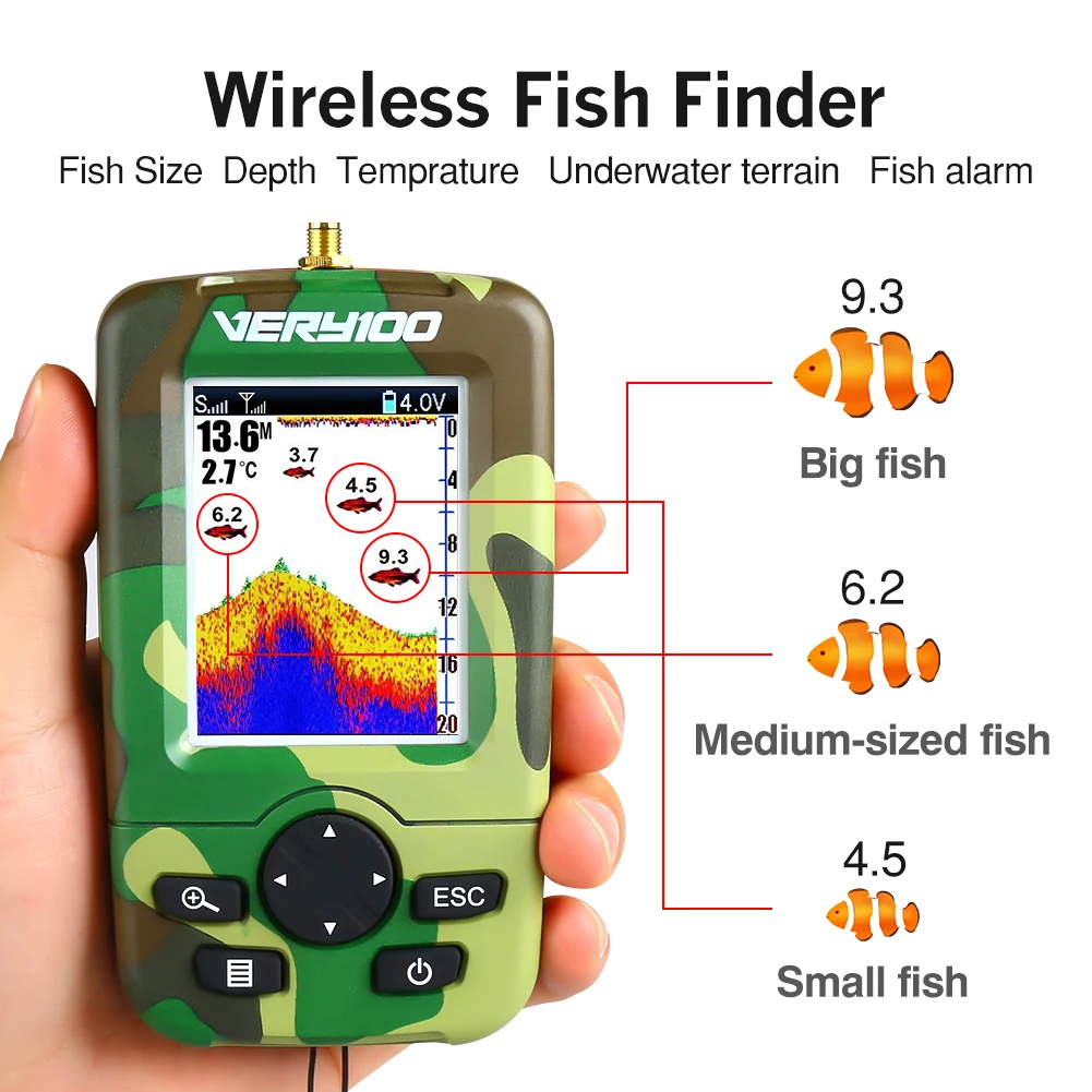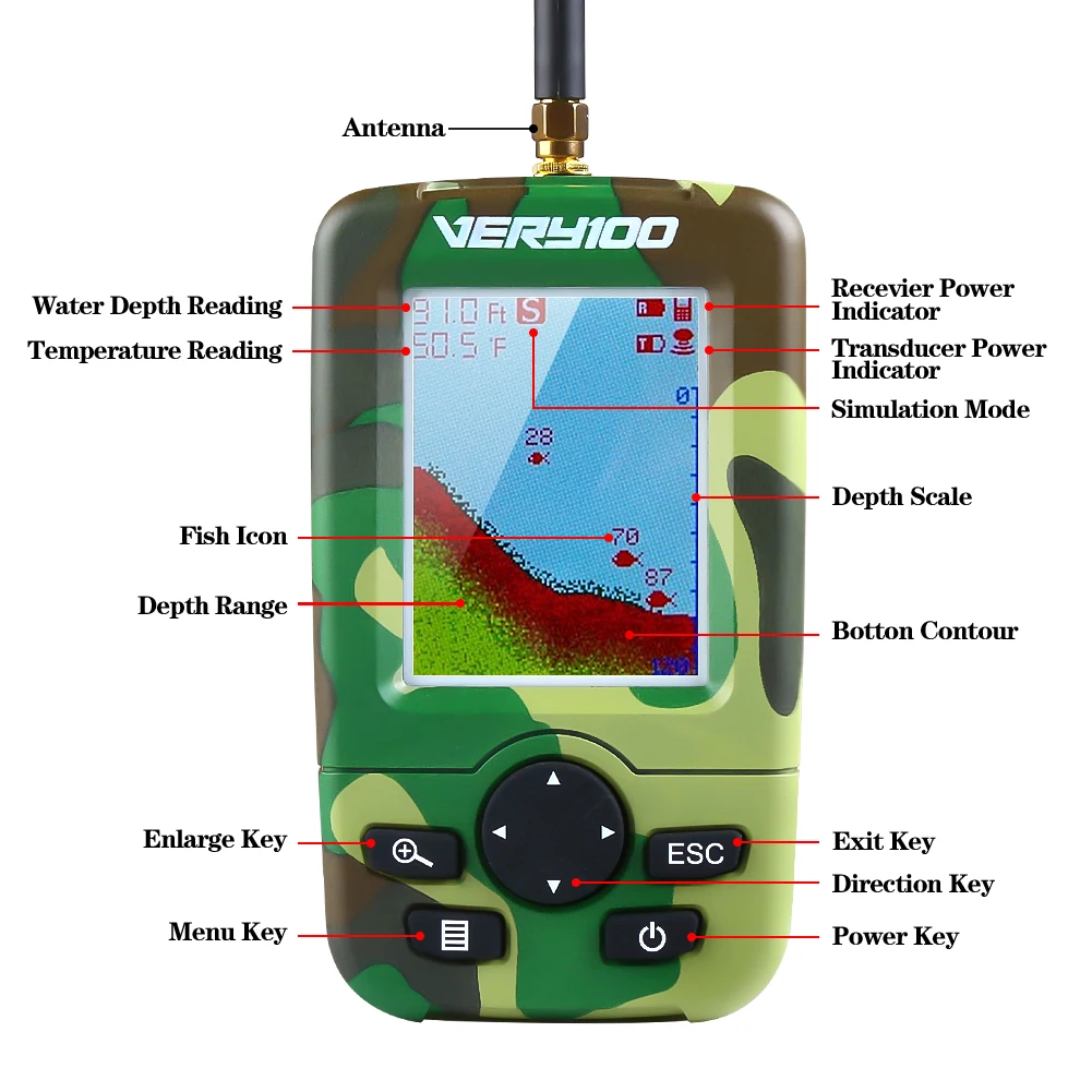 Alarma audible de peces y profundidad, profundidad de 2 pies a 120 pies.