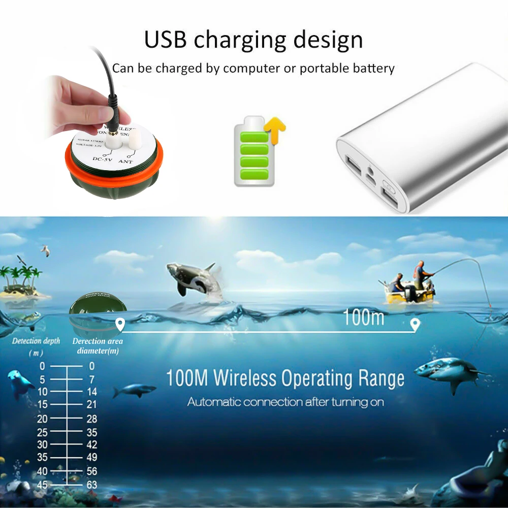 Funcionamiento sin cables de 100M/328 pies, capacidad de profundidad de 45m/147 pies.