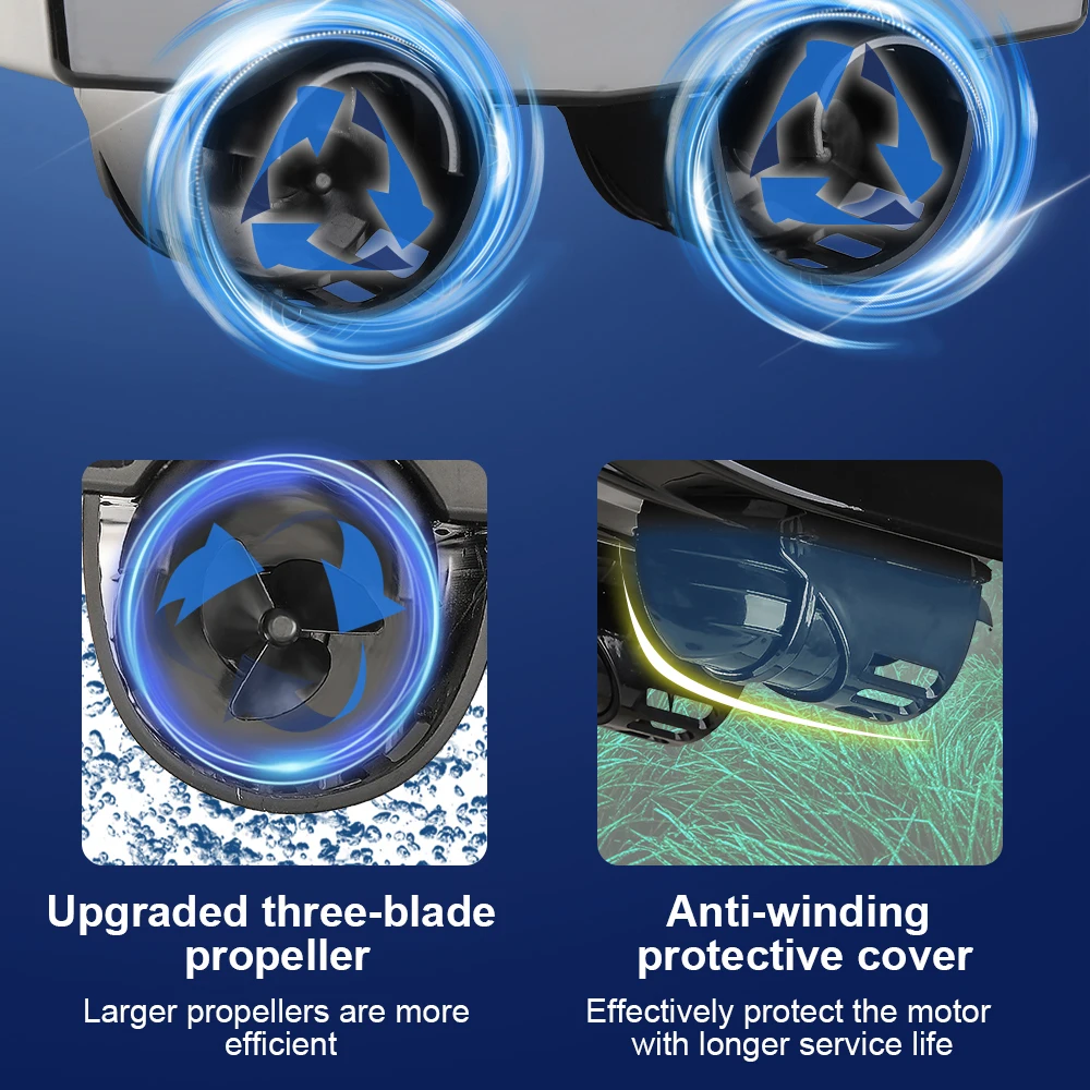 Potencia fuerte:Fuerte sistema de motor de doble potencia, funcionamiento silencioso, no molestará a los peces. La hélice de tres palas de alta eficiencia mejorada puede proporcionar una gran potencia y un crucero rápido.