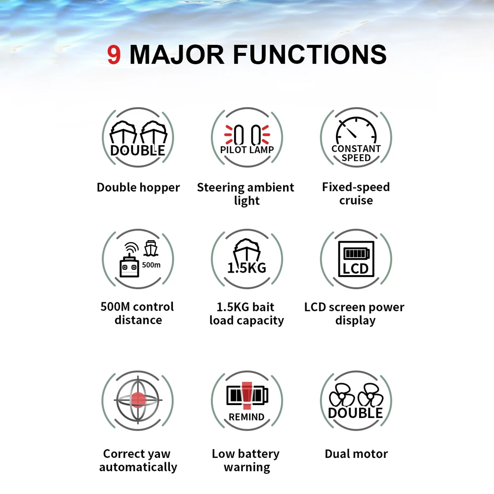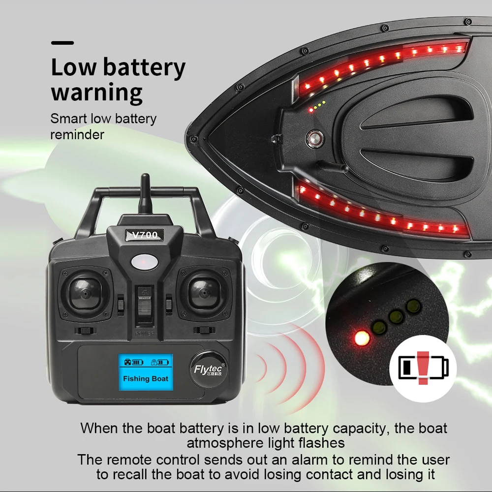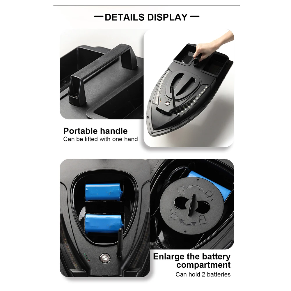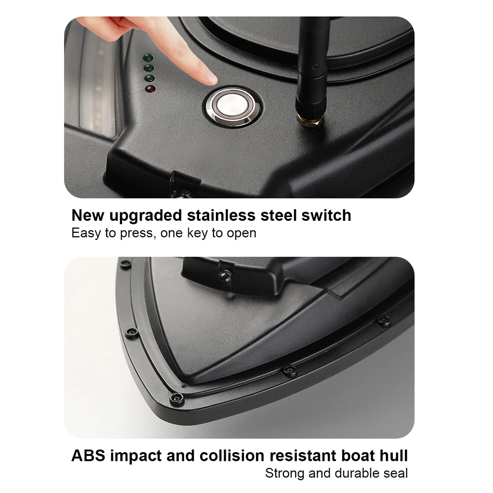 Larga resistencia:Equipado con batería de gran capacidad de 5200mAh, bajo consumo de energía y larga resistencia. Admite alarma de baja potencia para recordar a los usuarios que deben retirar el barco a tiempo, negarse a perder.