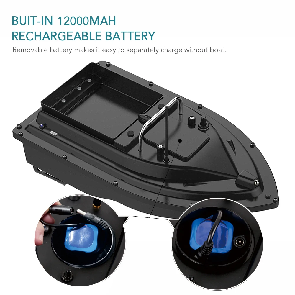 El Barco de cebo funciona con una batería recargable (incluida). La batería extraíble facilita la carga por separado sin barco.