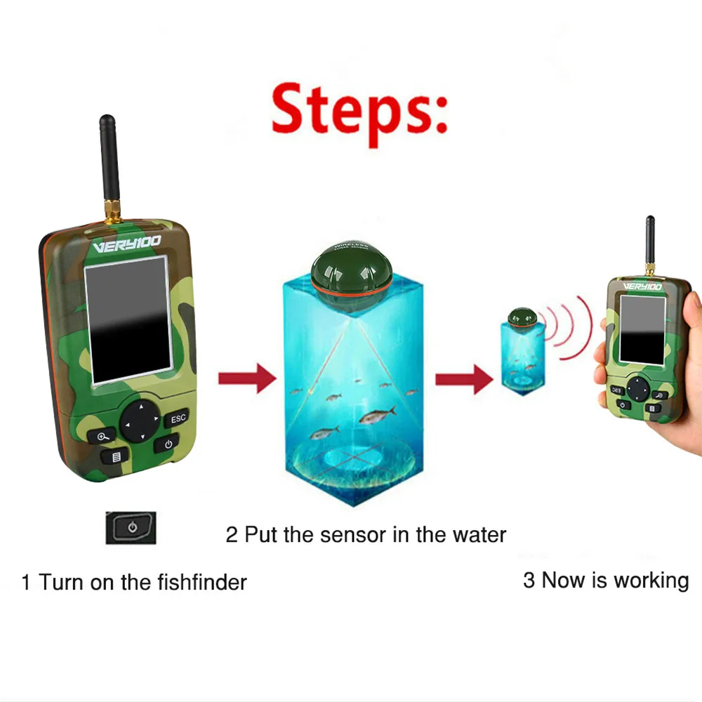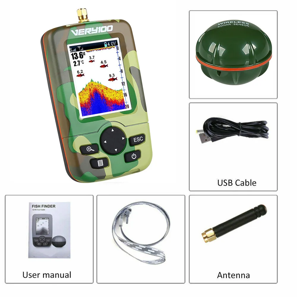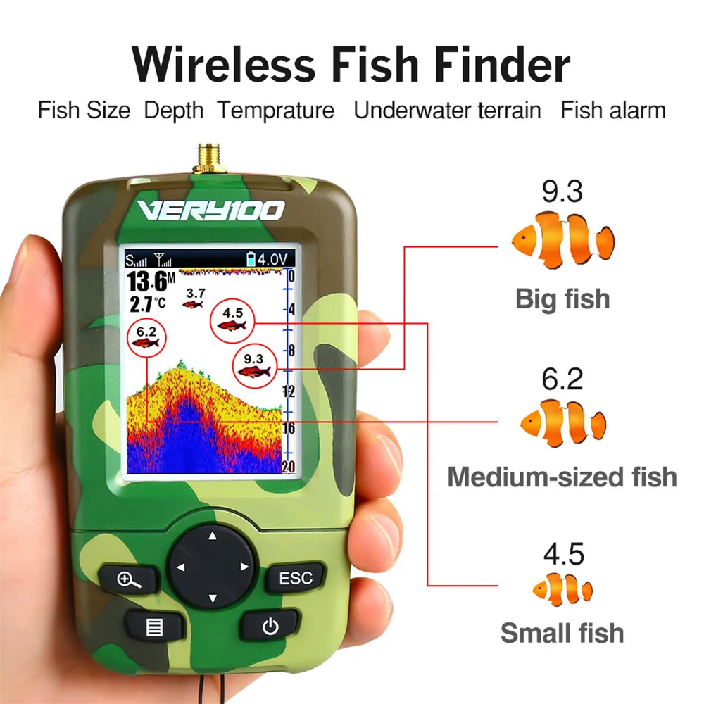 Alarma sonora de peces y profundidad, profundidad de 2 pies a 120 pies.