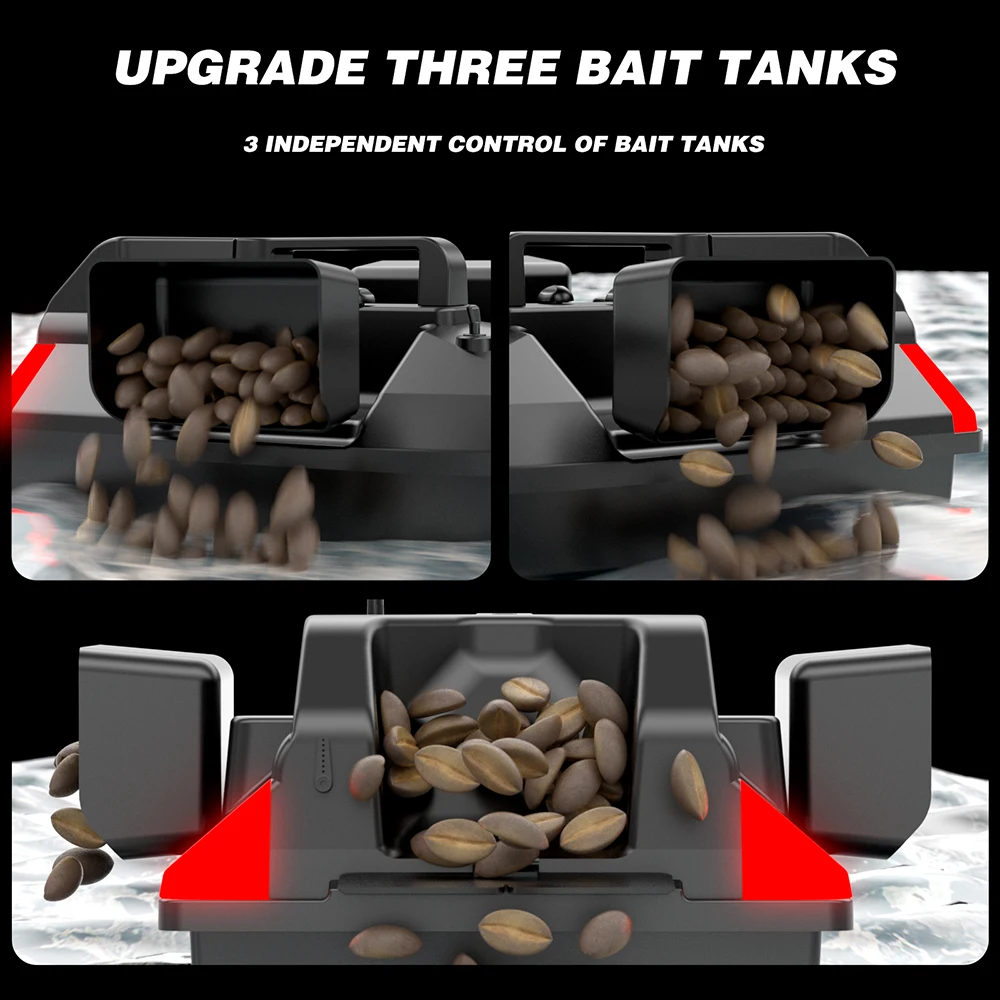 Diseño triple contenedor:Adopte un diseño de tres contenedores de control independiente, la capacidad de carga es de aproximadamente 2kg, puede controlar el anidamiento de punto fijo a voluntad. El diseño anti-desenganche se agrega al contenedor trasero, que puede enviar el anzuelo y la línea de liberación para evitar que la línea de pesca se enrolle.