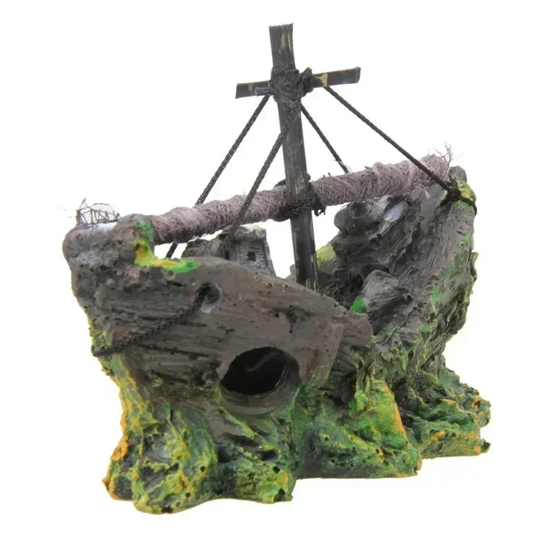 Adorno de acuario, barco hundido, destructor de barco a vela, decoración de cueva de pecera, accesorios para pecera