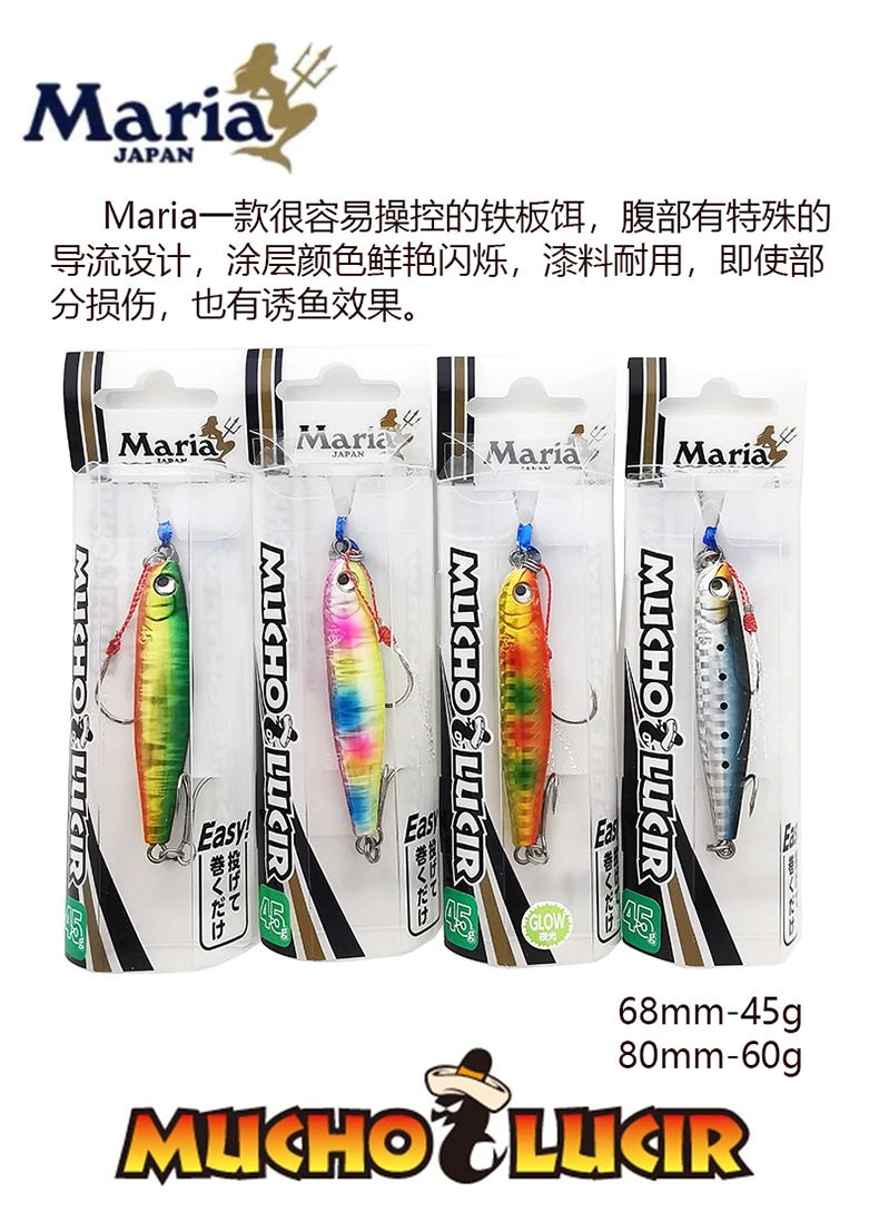 Barco de pesca de mar de Japón Maria, placa larga de hierro fundido, caballa, caballa española, cebo de lanza dorada, 45g, 60g