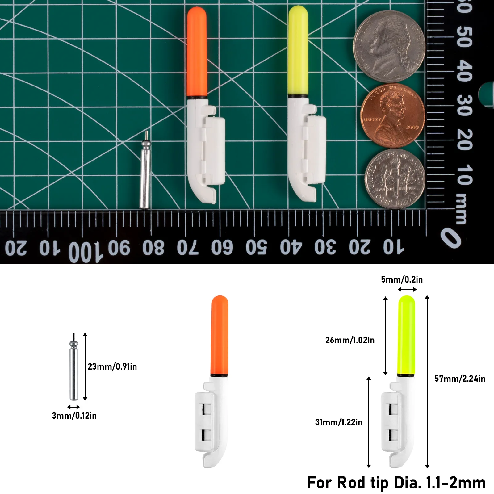 4. Aplicaciones versátiles: este palo luminoso LED de pesca nocturna es adecuado para cañas de pescar con un diámetro de menos de 1 pulgada. Antes de comprar, es importante medir el tamaño de la punta de la caña para garantizar la compatibilidad. Ya sea que te guste la pesca en el mar o la pesca en roca, estos palos luminosos son perfectos para mejorar tu experiencia de pesca.