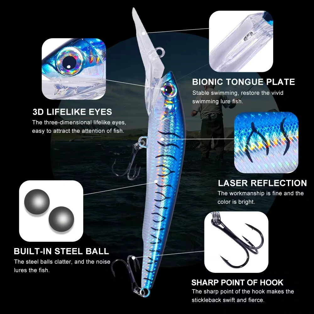 Fácil de manejar: el señuelo minnow está diseñado para ser fácil de manejar y controlar, lo que facilita su uso y maniobra incluso para principiantes, mejorando el éxito de la pesca.