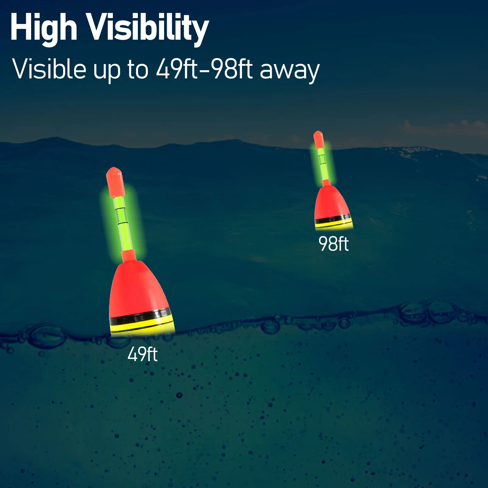 2. Visibilidad mejorada en la oscuridad: con un rango de visibilidad de 30 a 100 pies, estos palos luminosos brillan extremadamente brillantes, lo que los hace perfectos para la pesca nocturna o la pesca temprano en la mañana.