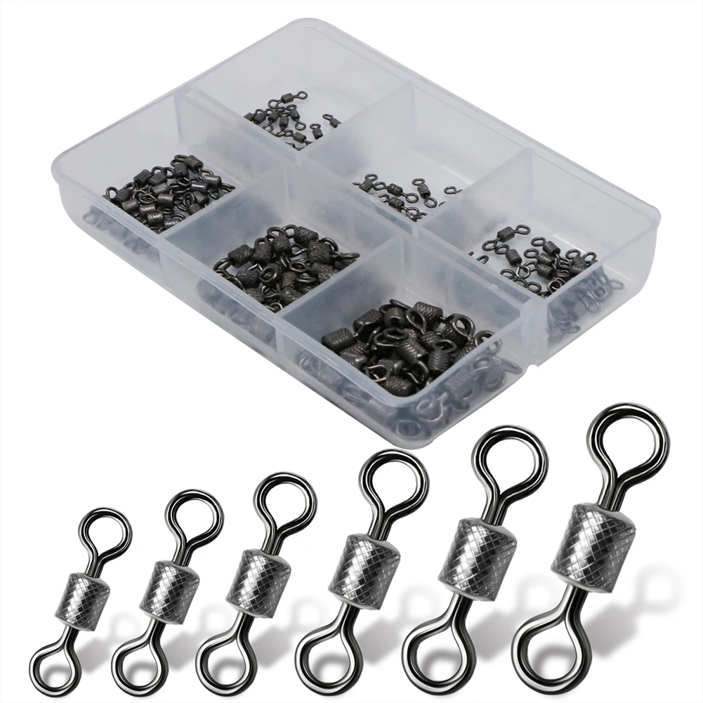 150 unids/caja 6 tamaño de barril de acero inoxidable rodante giratorio de pesca accesorios de pesca sólidos herramienta de conector de gancho de pesca de mar