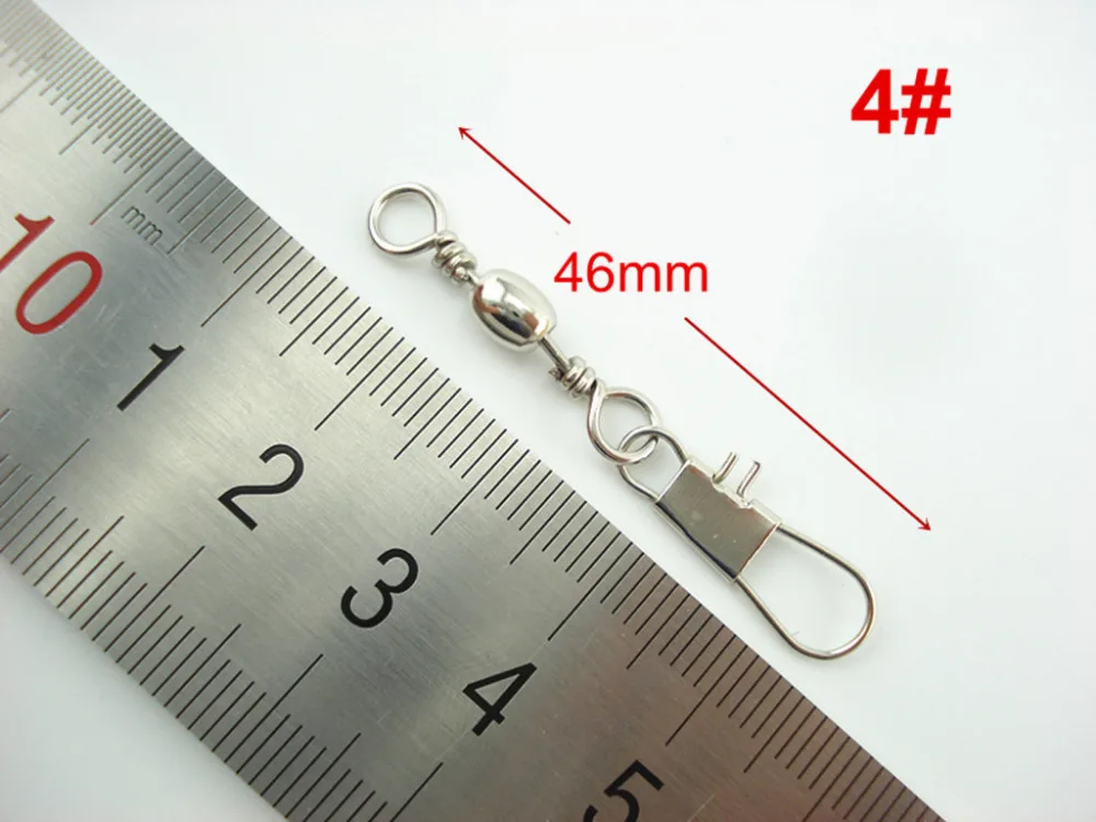 Barril giratorio de latón para pesca, con enclavamiento anzuelo de pesca, Conector de señuelo a presión, 100 piezas x 4 #, Señuelos de Pesca con rodamiento de bolas