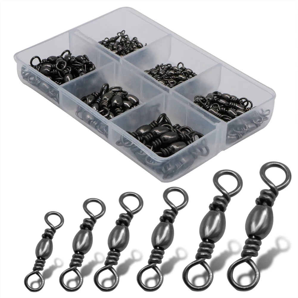 120 unids/lote barril giratorio de pesca de tamaño 6, Conector de gancho de Pesca de Mar de acero inoxidable giratorio para caja de aparejos de pesca de mar