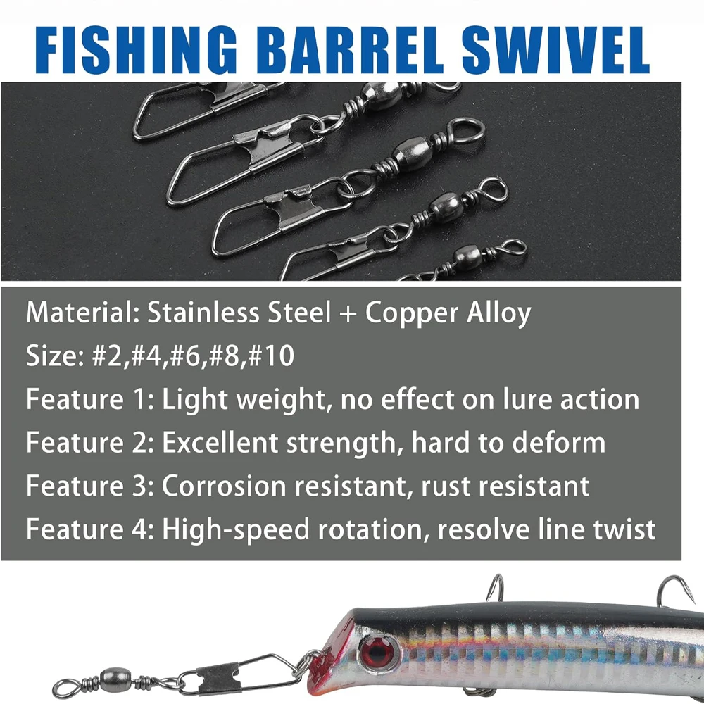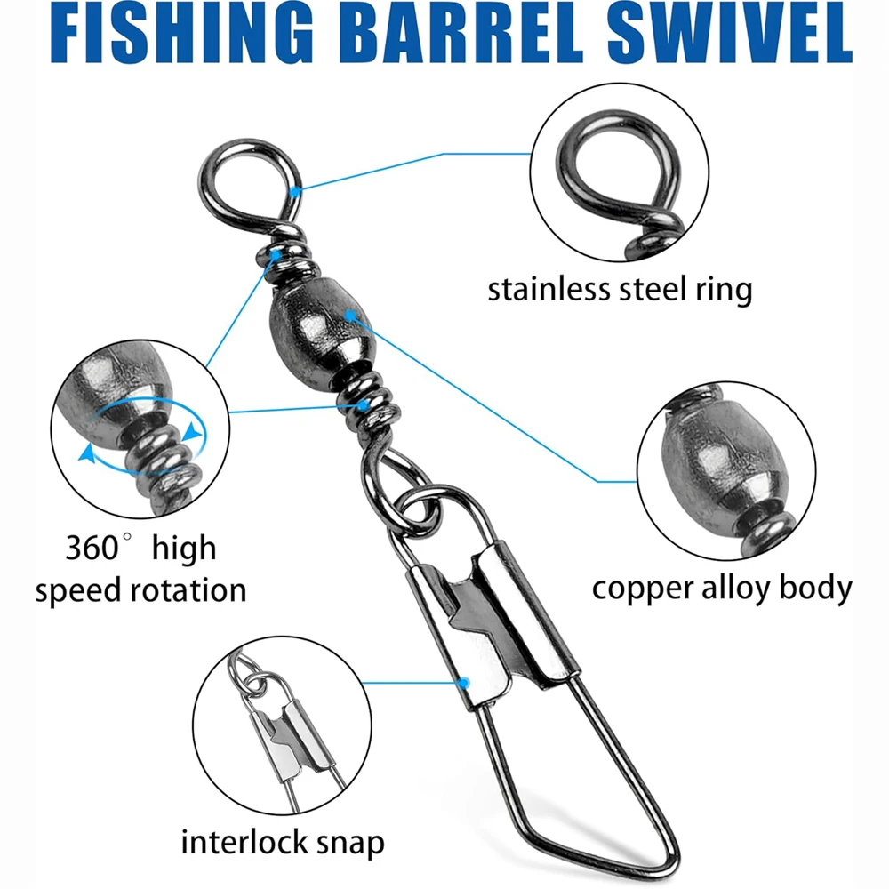 1. Los eslabones giratorios de pesca de barril están hechos de acero inoxidable y cuerpo de cobre, níquel pulido todo el eslabón giratorio a presión, resistente a la corrosión en agua salada. Su construcción robusta garantiza una alta resistencia y un gran rendimiento en diversos entornos de pesca