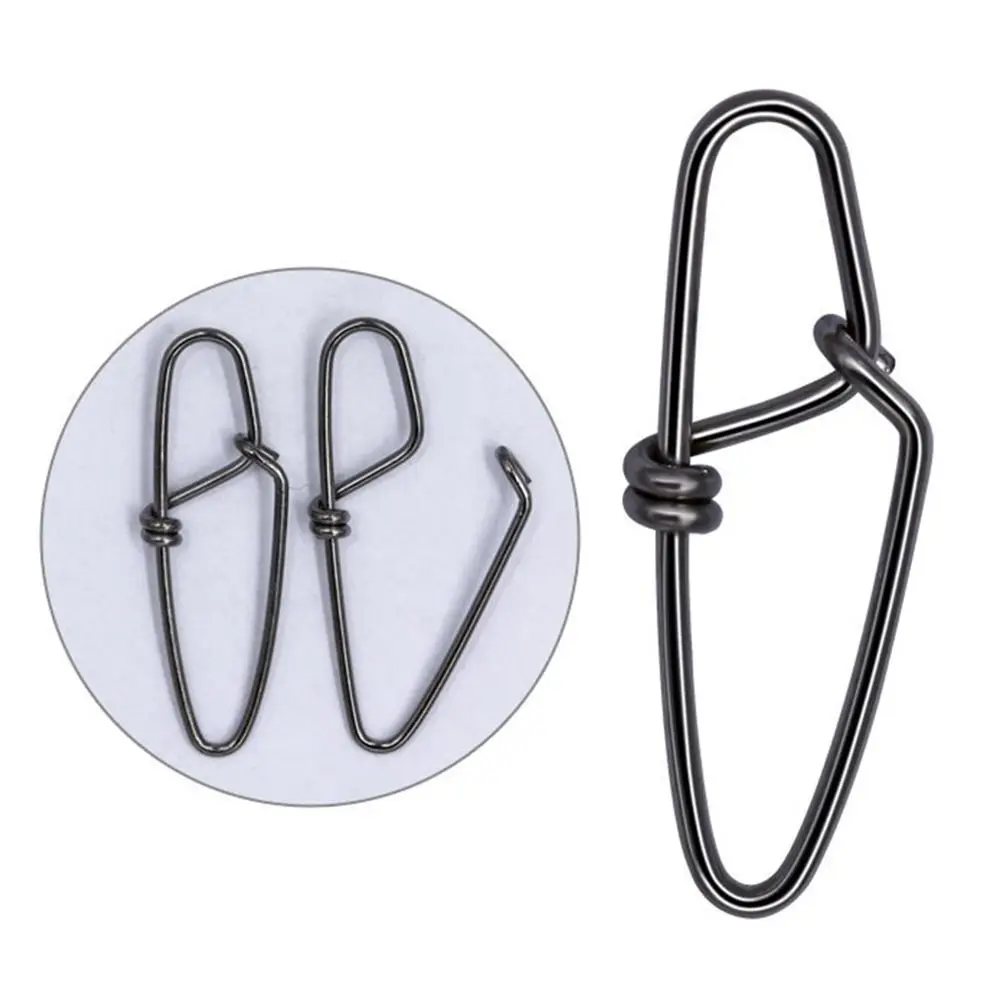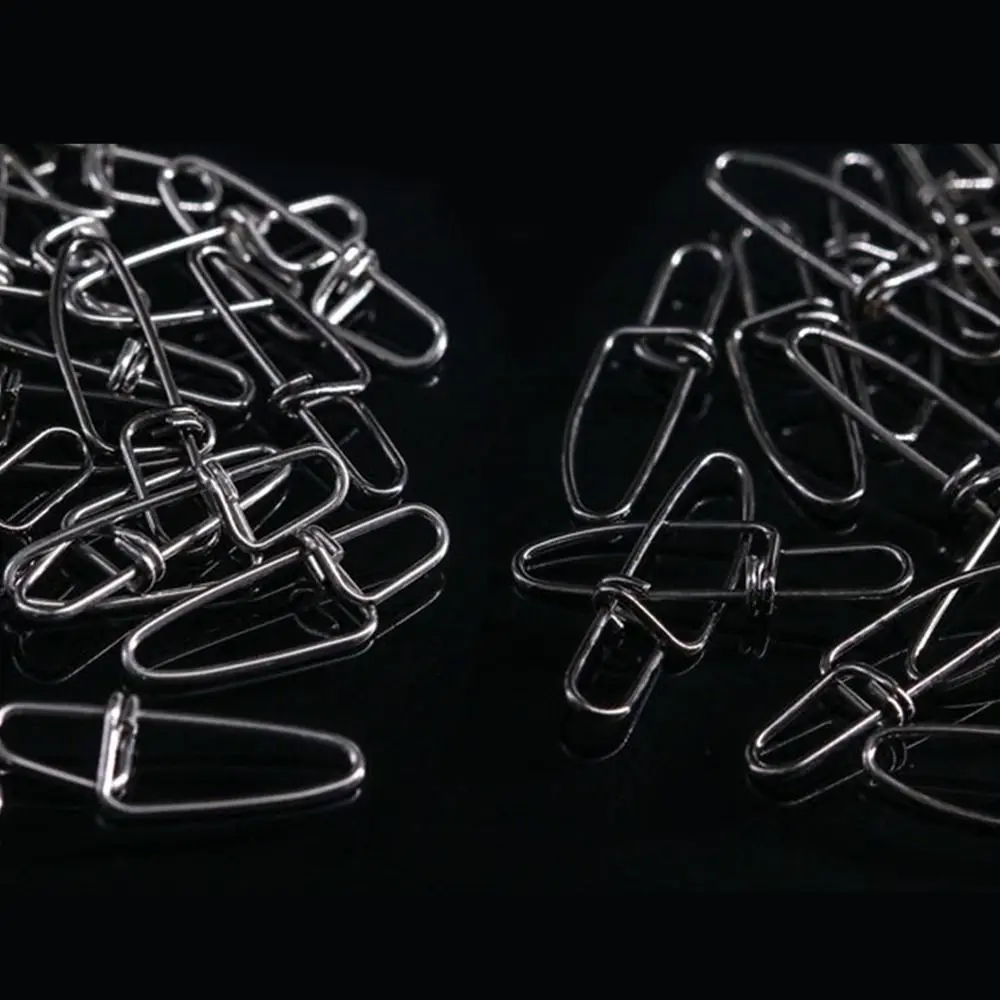 Imprescindible para pesca en caña, downriggers, agua salada y juegos grandes. Material: acero inoxidable Tamaño: 0 #/1 #/2 #/3 #/4 #/5 #/6 # Color: Negro Cantidad: 100 piezas El paquete incluye: Broche de pesca de 100 piezas