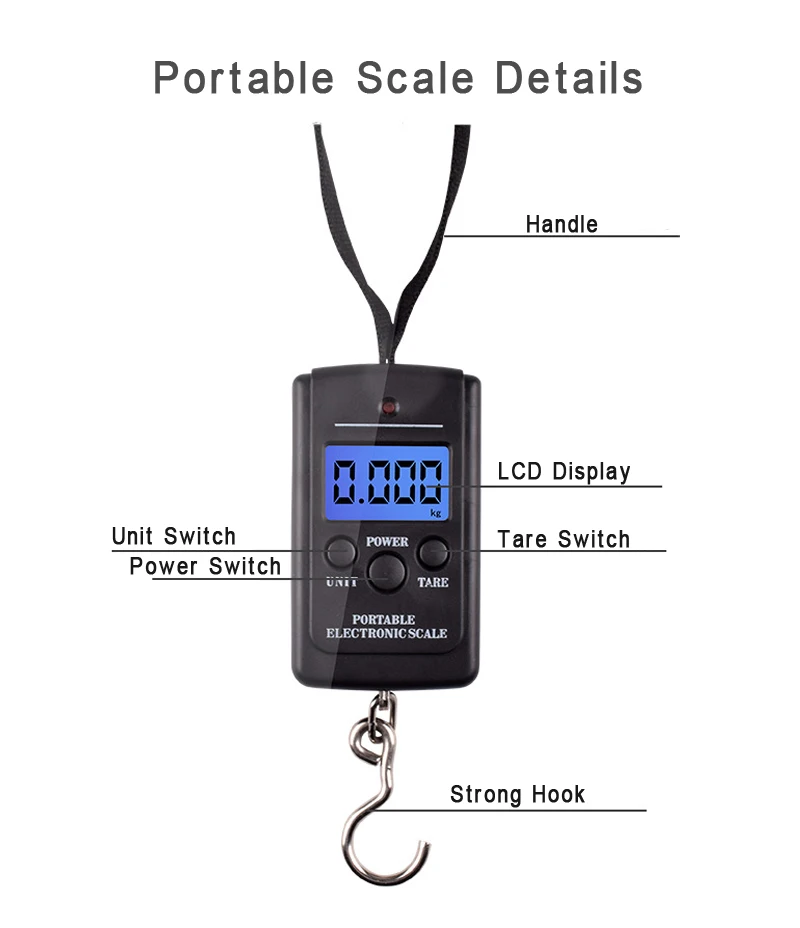 Báscula electrónica portátil de 40KG para pesca de carpa, peso de pez, báscula de gancho, regla de peso de pesca de bolsillo, herramienta de pesca Digital