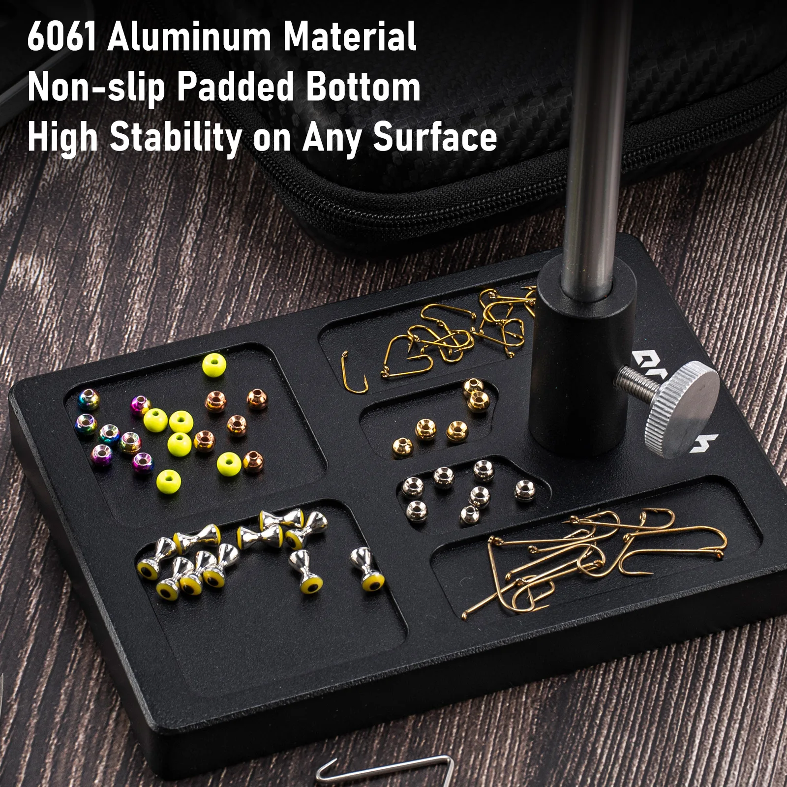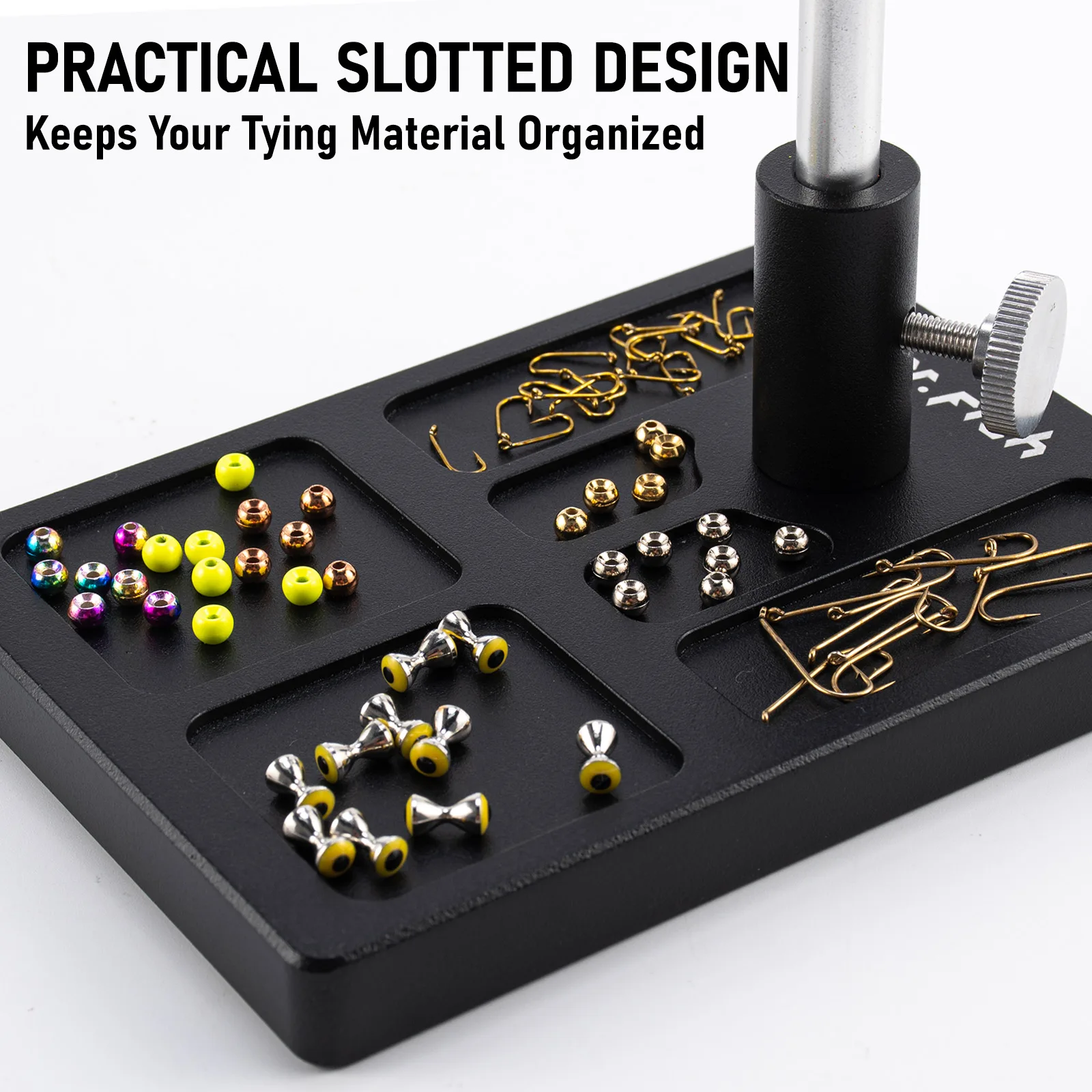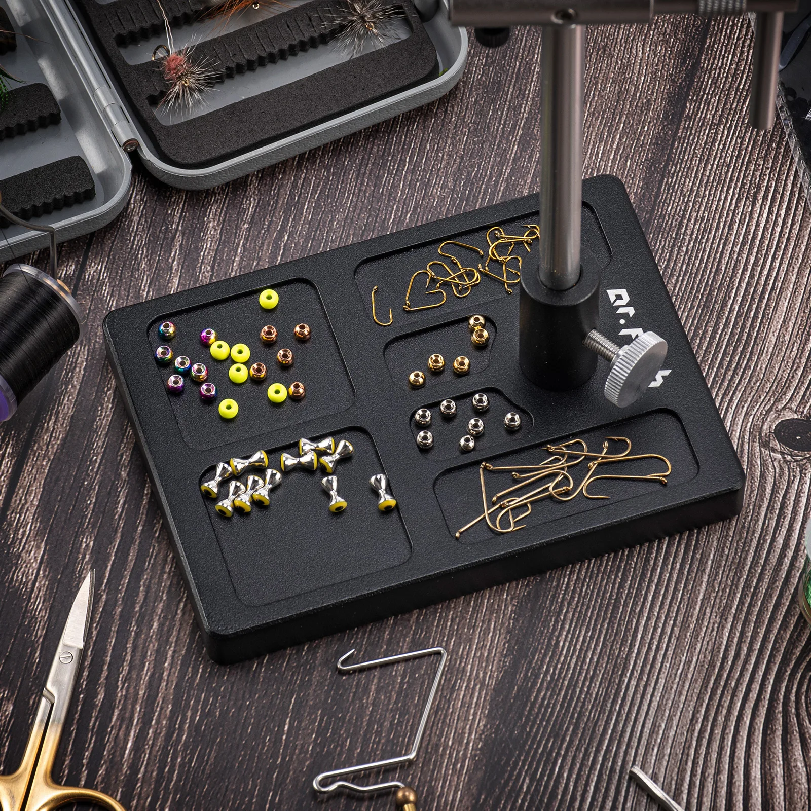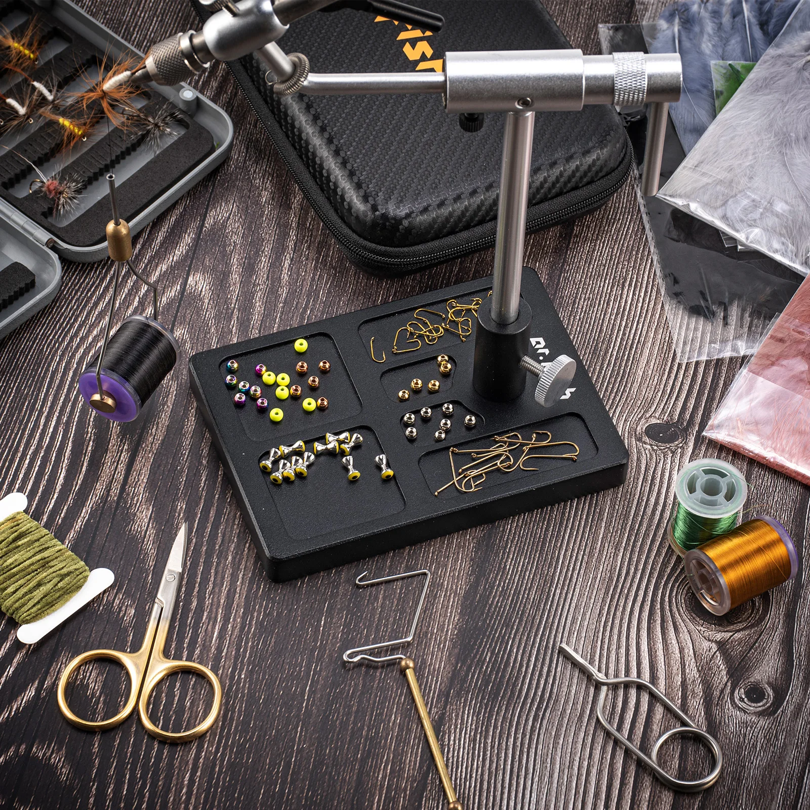 The heavy pedestal base with slots made in it to hold flies you've tied, beads, or hooks, help to keep everything neat and organized.