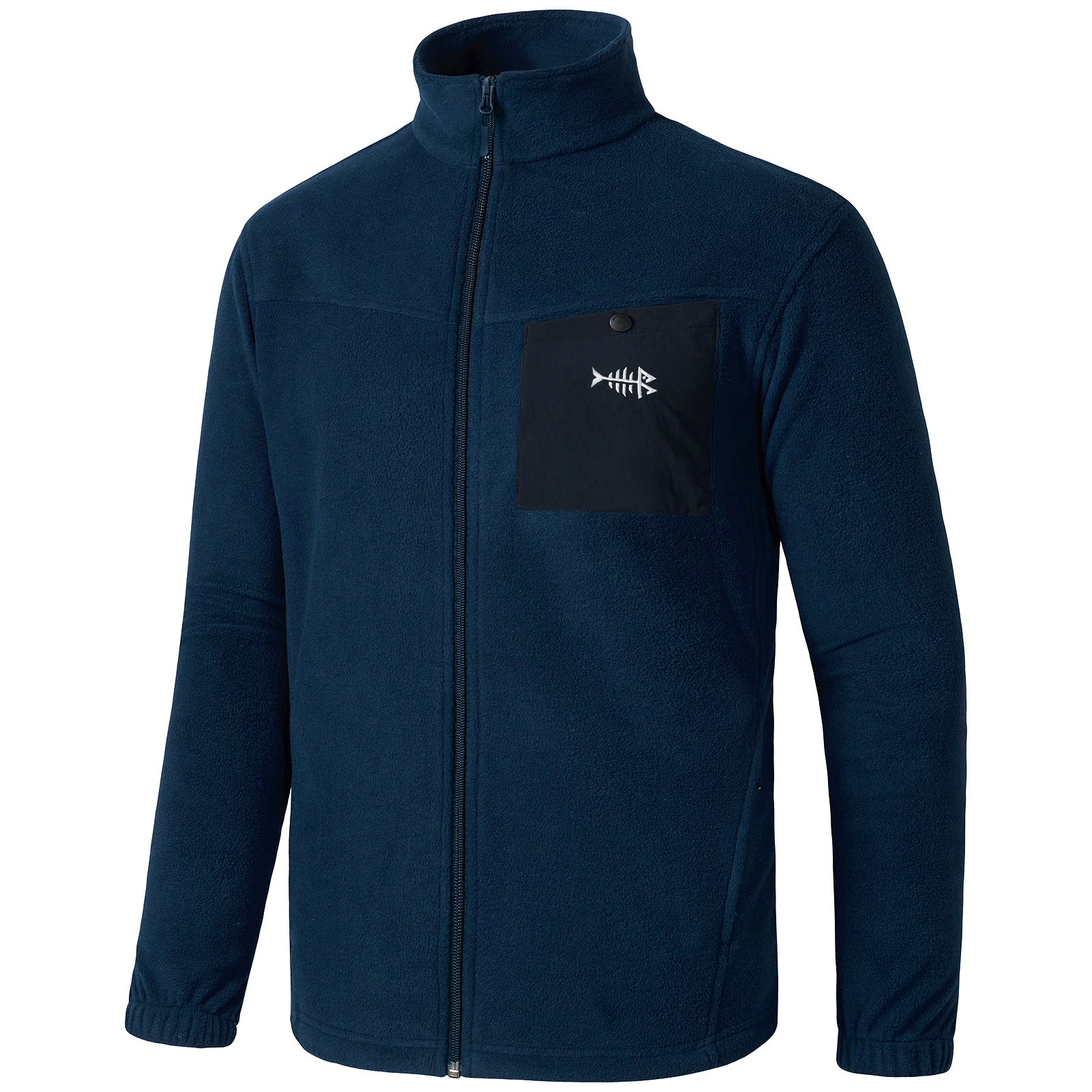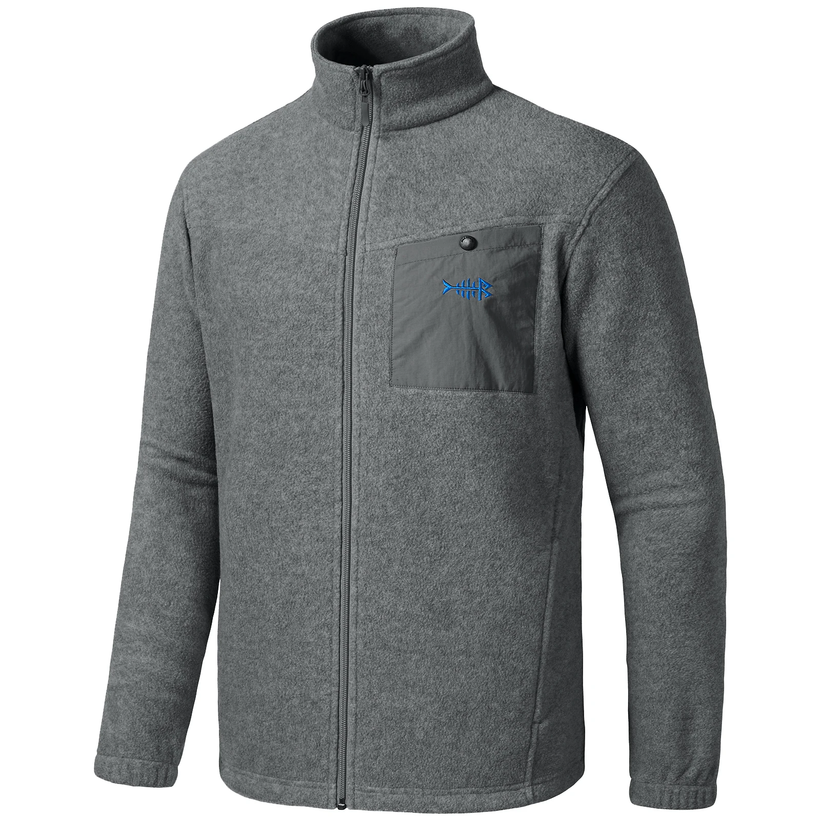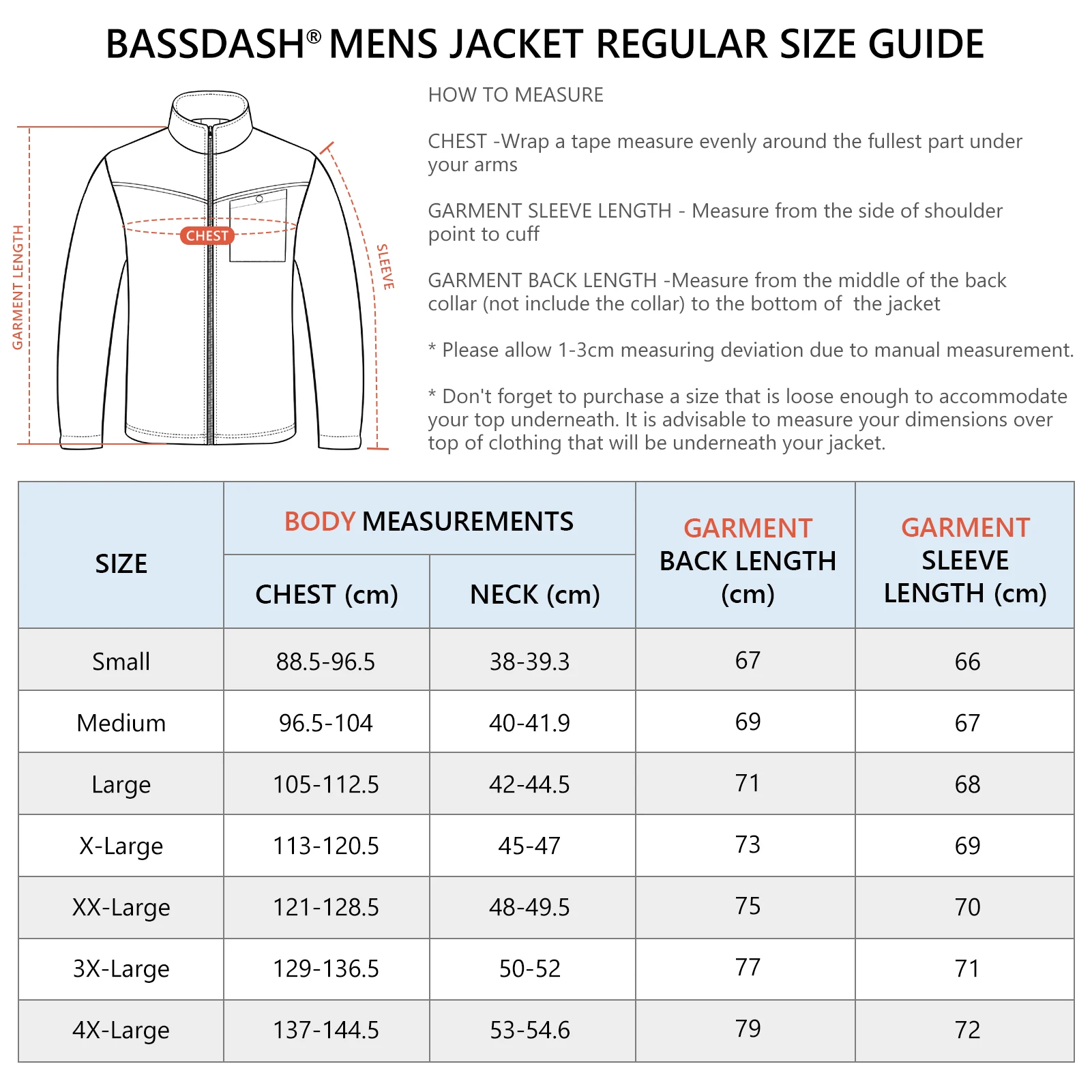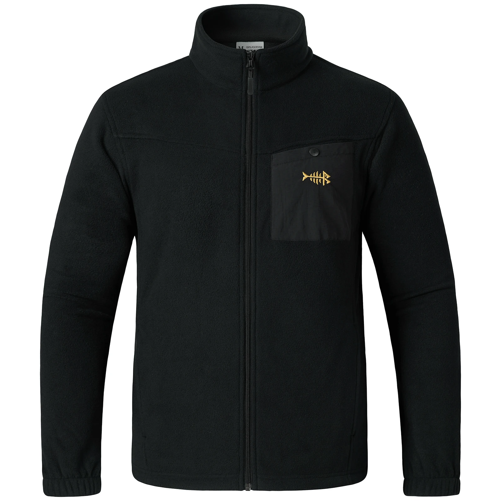 Diseño de múltiples bolsillos: un bolsillo en el pecho con cierre de botón y con logo de pez Bassdash bordado; dos bolsillos laterales con cremallera para calentadores de manos con cremalleras