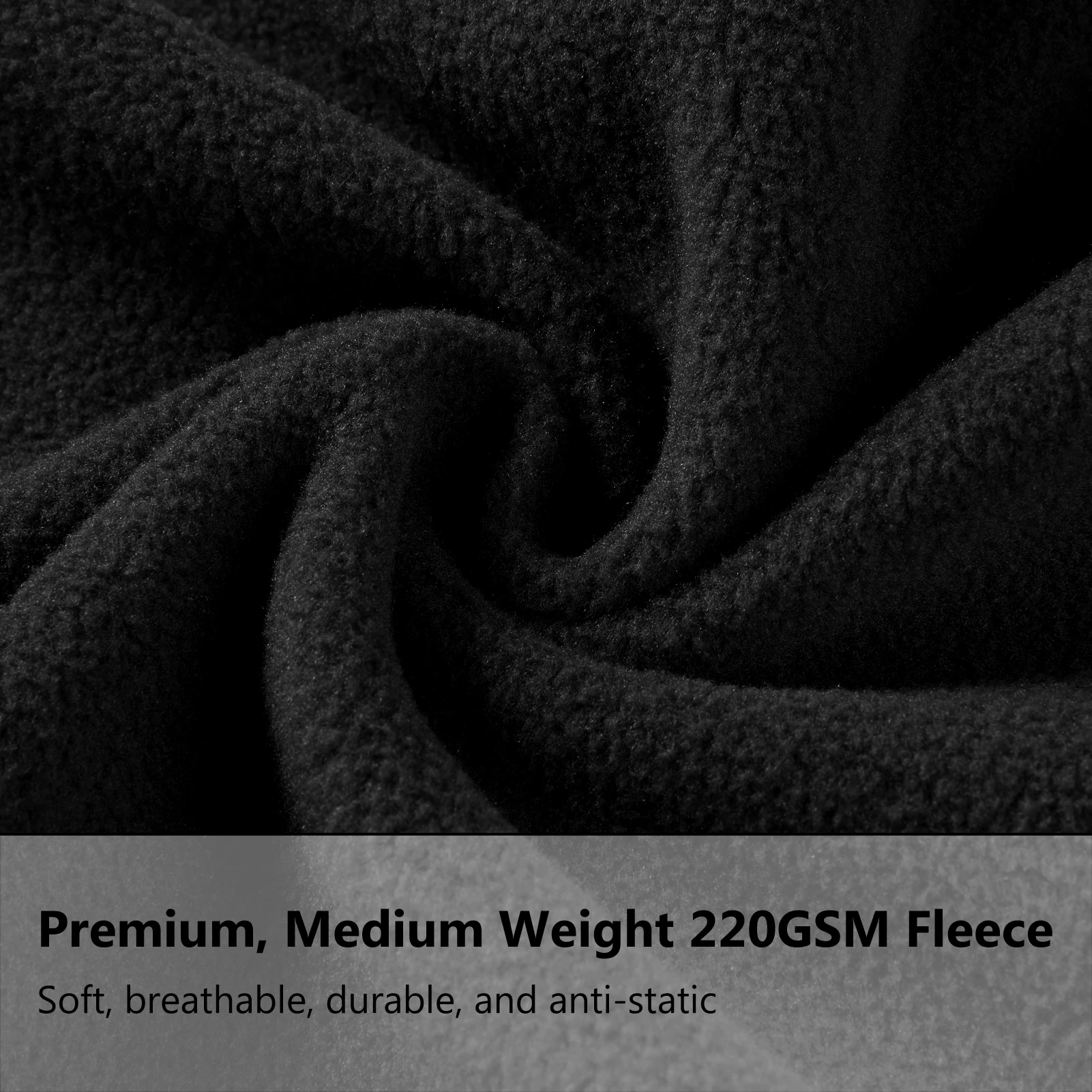 Hecho de 100% poliéster, es decir, forro polar de 220GSM de peso medio: suave, transpirable, que absorbe la humedad y es resistente, duradero, antiestático y antibolitas.