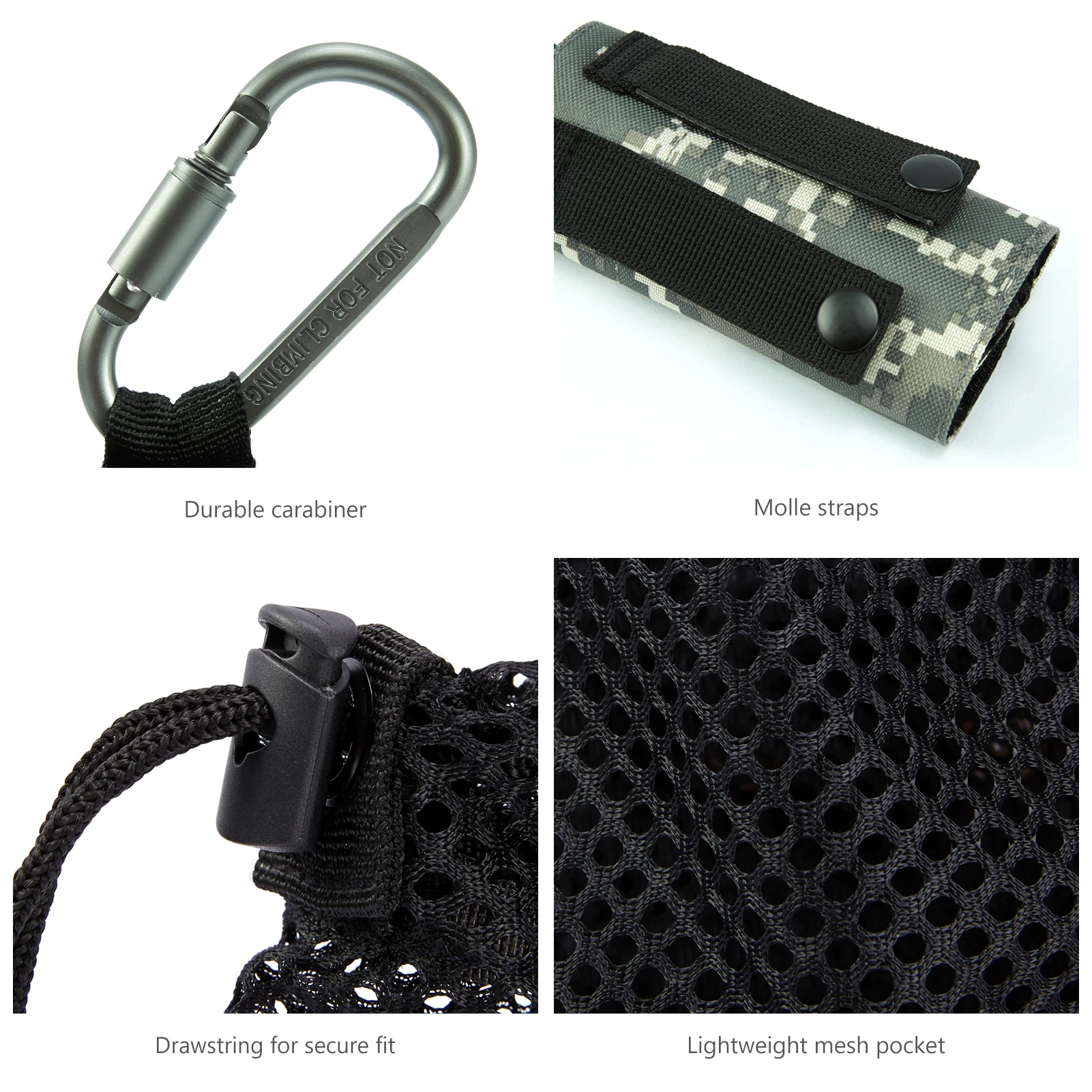 Molle compatibility allows this pouch to be easily attached to other tactical backpacks, vests, belts, etc. that are with Molle webbing straps; With an enclosed carabiner, it can be hung on other gears