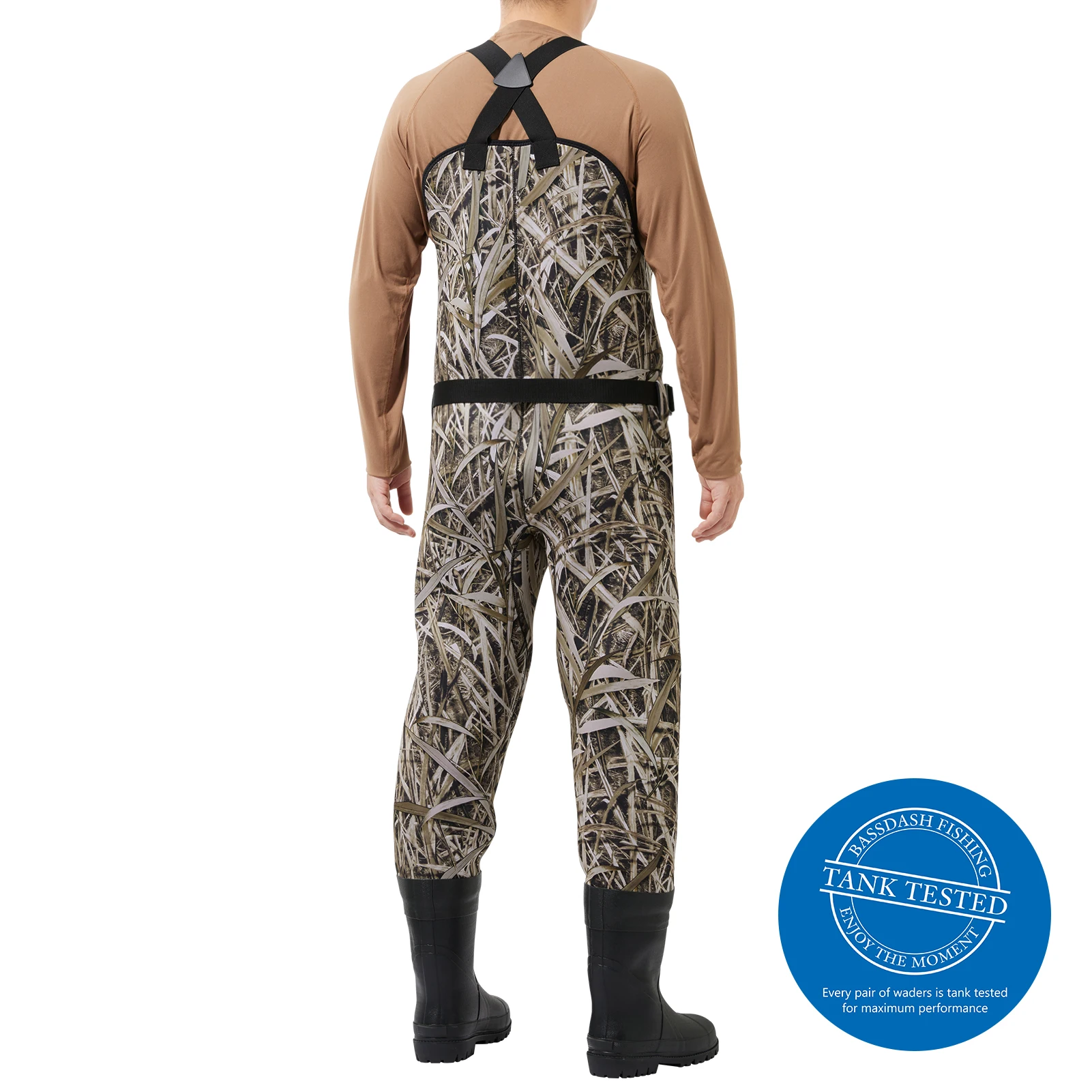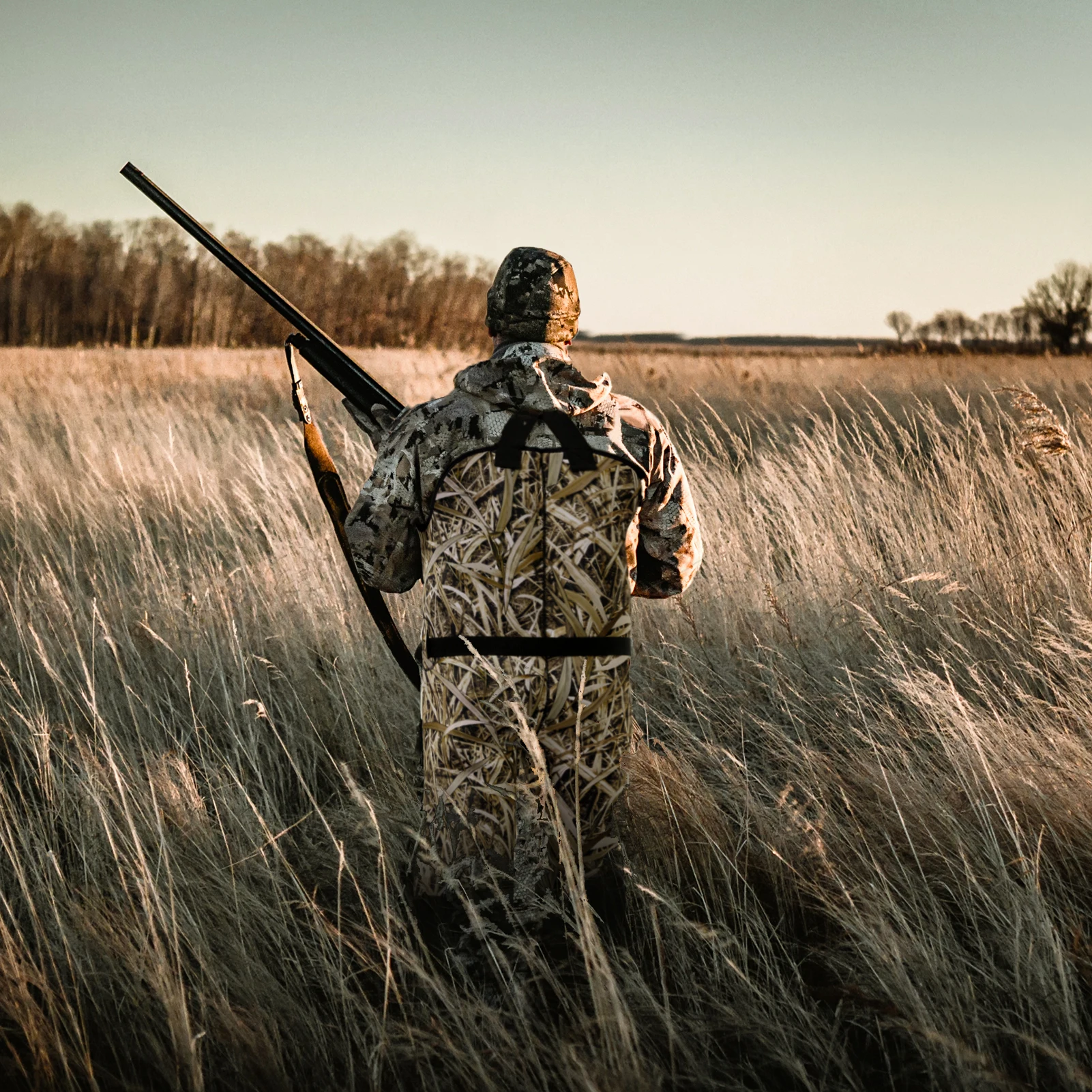 Camuflaje patentado Bassdash Reed II: diseñado para tierras húmedas: los patos y otras aves son sensibles a los colores, pero este camuflaje combina cañas y pastos altos que hacen de este camuflaje una impresión ideal para cazadores de cascadas y deportistas de pantanos.