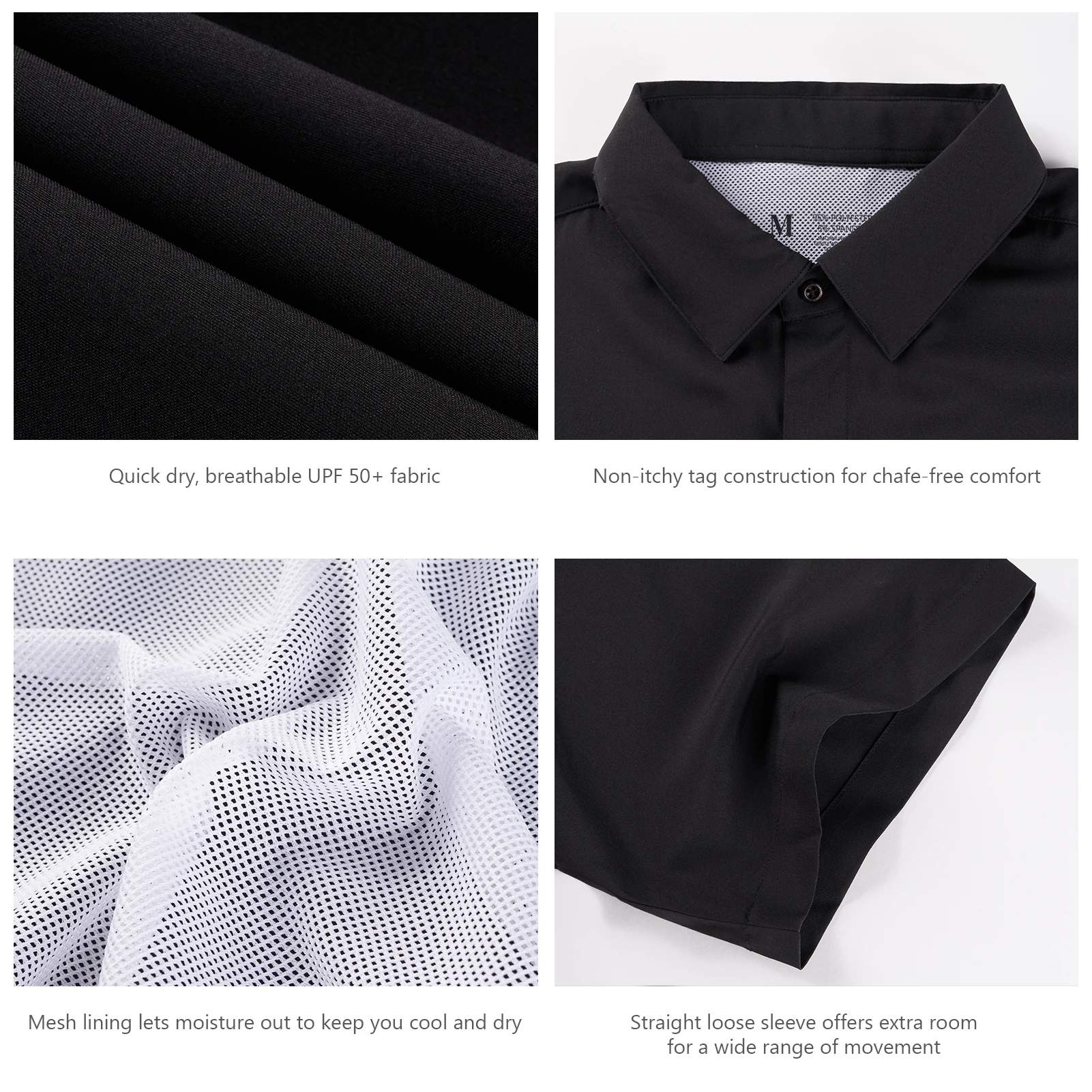 The 95% Polyester, 5% Spandex fabric is 4-waystretchy, quick drying and lightweight and featured with UPF 50+ thatblocks98% of the sun’s harmful ultraviolet rays