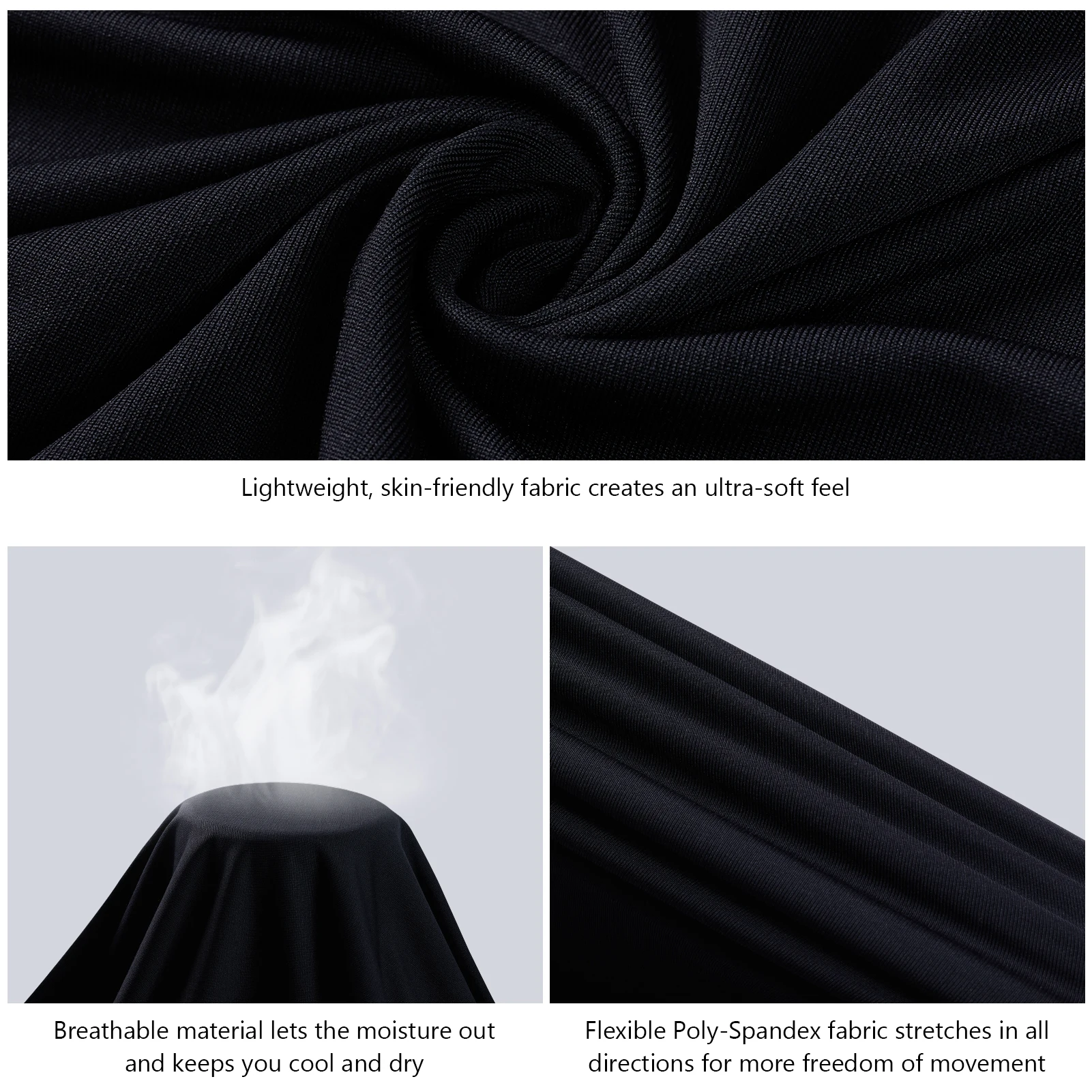 The 4-way stretch material improves the flexibility to provide more freedom of movement; Classic crew neck collar and set-in sleeve design fit most shoulder shapes and deliver a spirit look