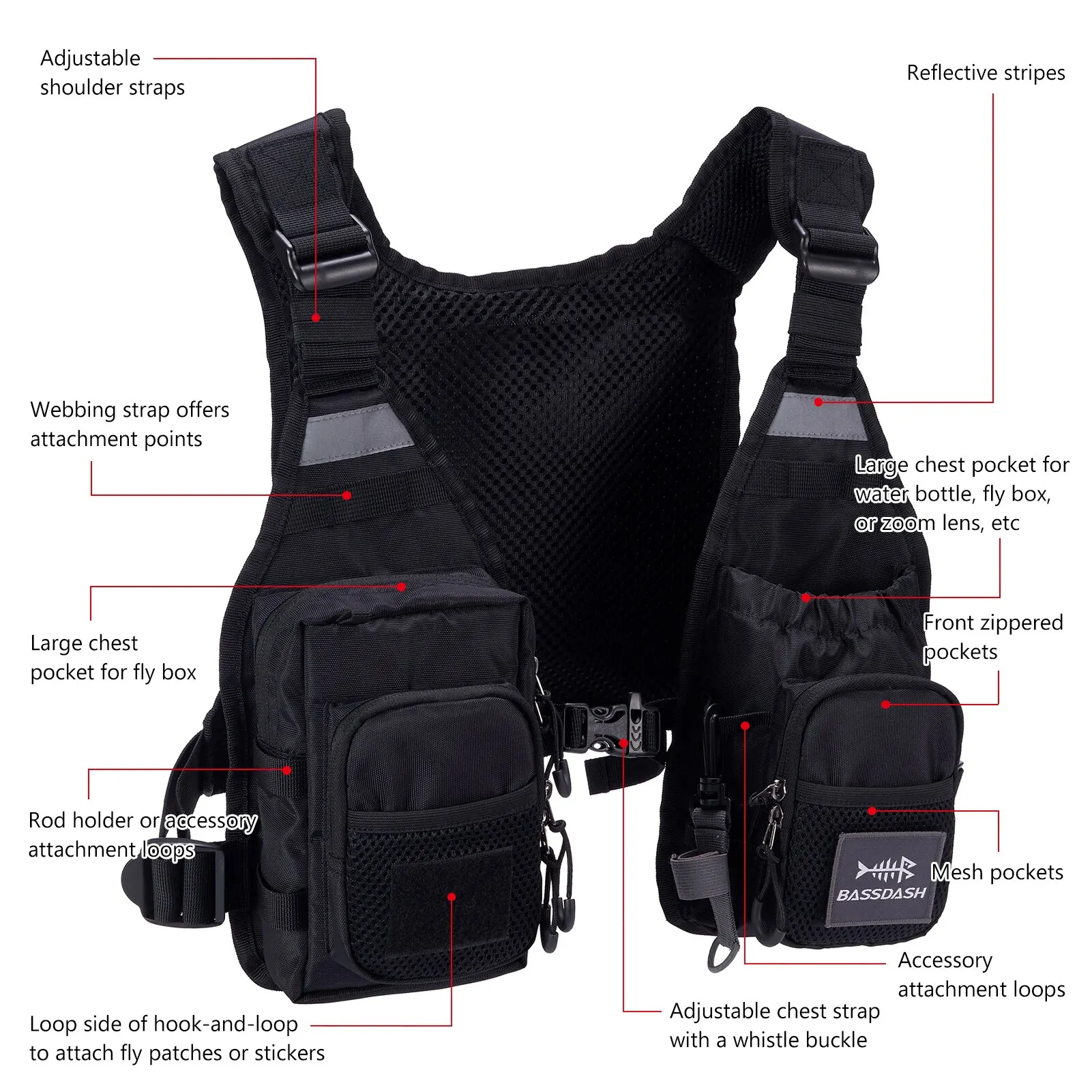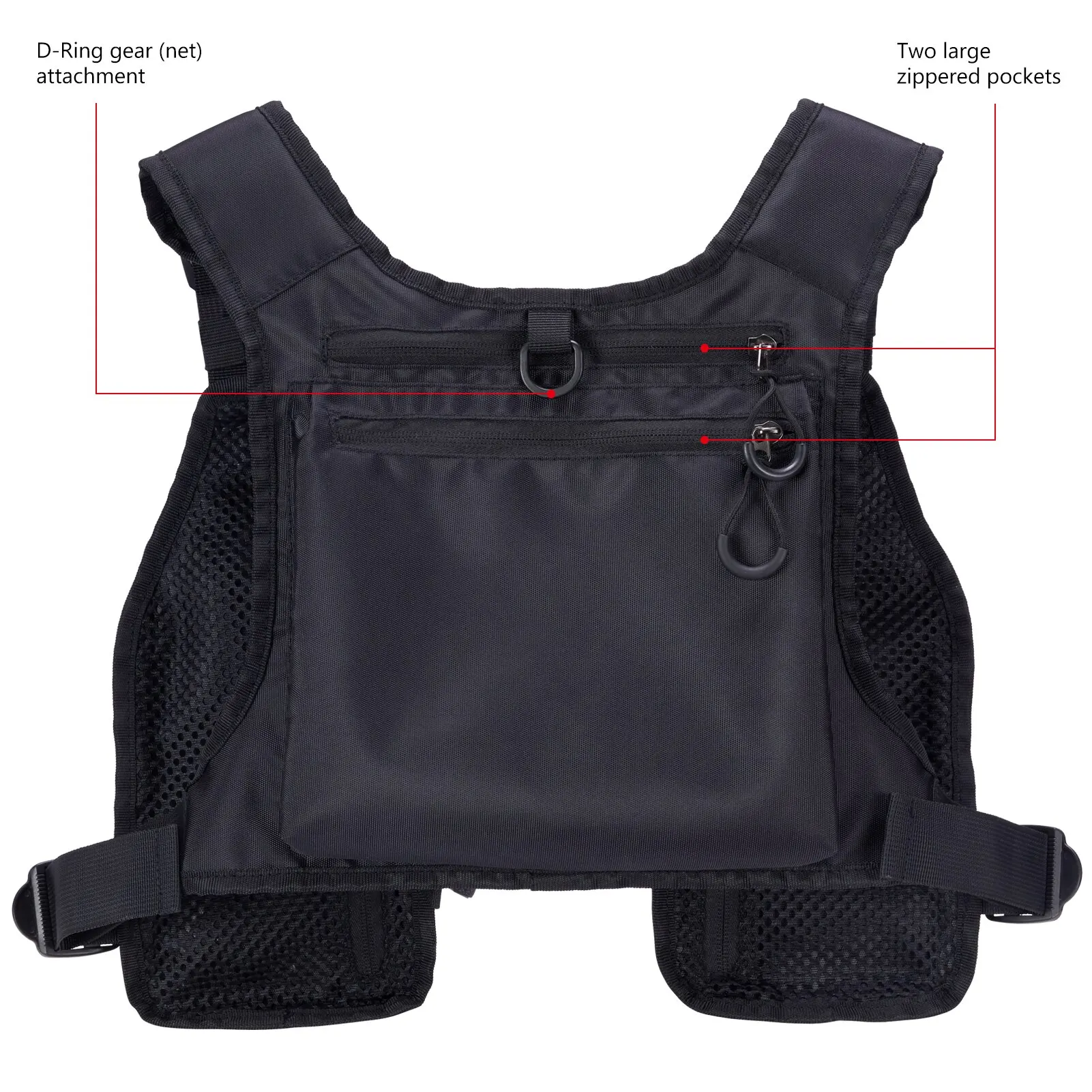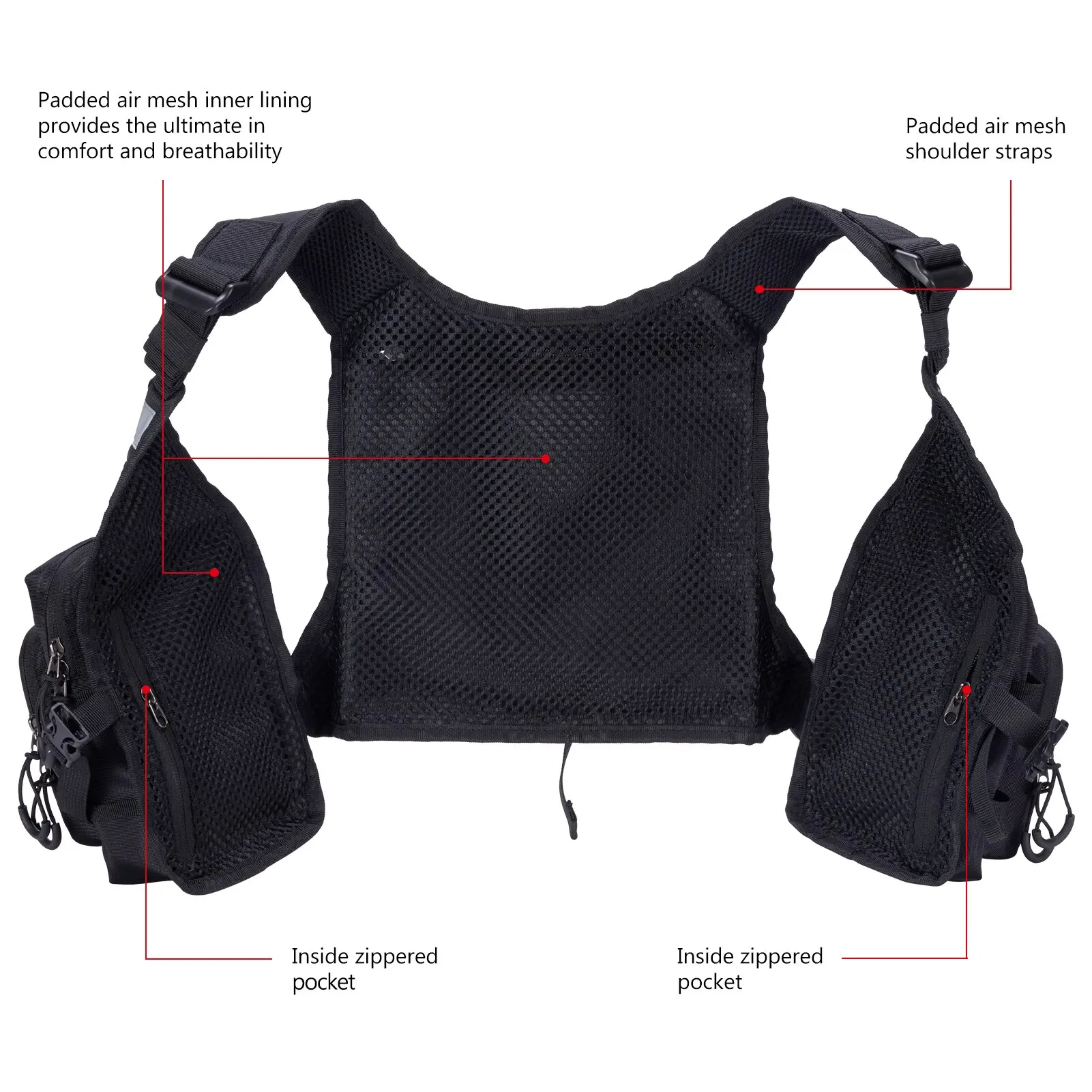 Diseño de 10 bolsillos: múltiples bolsillos de almacenamiento interiores y exteriores para mantener todos sus aparejos organizados: un gran bolsillo con cremallera en el pecho para cajas de moscas y otro con boca abierta para botella de agua o lente de zoom, etc. Dos bolsillos con cremallera frontal más pequeños para cajas de moscas, carretes tippet. Dos bolsillos delanteros de malla para líderes u otros accesorios